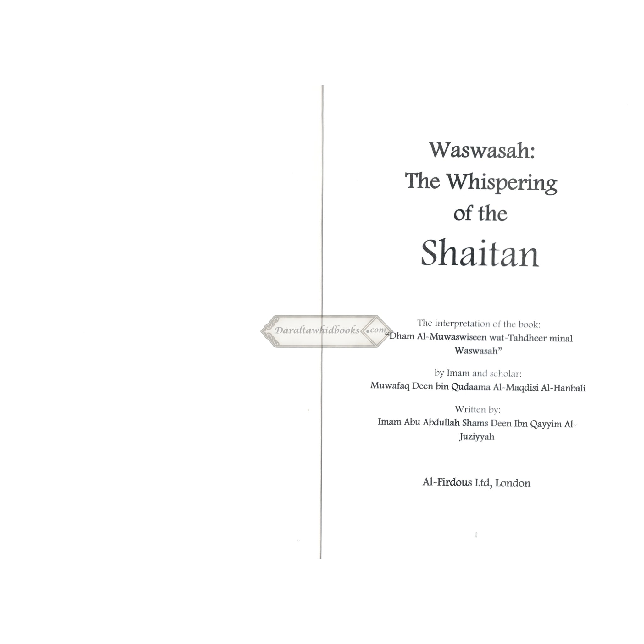 "Waswasah The Whispering Of The Shaitan" by Muwafaq Deen Bin Qudaam Al-Hanbali is a thorough investigation of the subtle and insidious whispers of the Shaitan (Satan) that can affect the hearts and minds of believers. Waswasah The Whispering Of The Shaitan, based on Islamic teachings, reveals the Shaitan's tactics for sowing doubt, fear, and confusion, providing useful insights and practical strategies to protect one's faith and mental well-being.