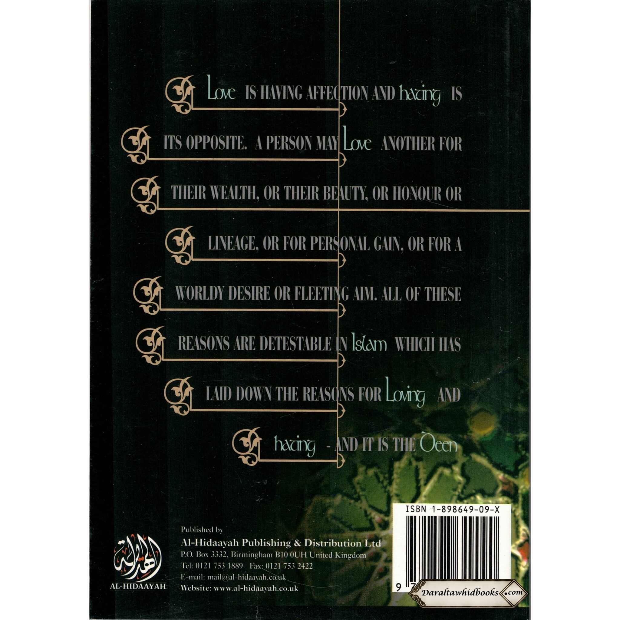 LOVE AND HATE FOR THE SAKE OF ALLAH is one of the great doors leading to the good of the Hereafter and a cause of tasting the sweetness of eemaan in this world. There are some people who think that loving and hating is an affair of the heart only and that a person in unable to have any control over it, so how is he able to cause himself to love and to hate another? From that which is known necessarily in Islam is that the heart is to follow "aqeedah and eemaan, so whoever in Allah as his Lord, Islam as his religion and way of life (deen) and in Muhammad as the Messenger, then he must necessarily love whoever loves Allah, therefore loving and hating is an obligation upon the Muslim. Furthermore, Allah, the Most High, has warned us against going beyond bounds in these two matters so that we do not cause distensions and widespread corruption in the land, as occurs a the end of sooratul-Anfaal.