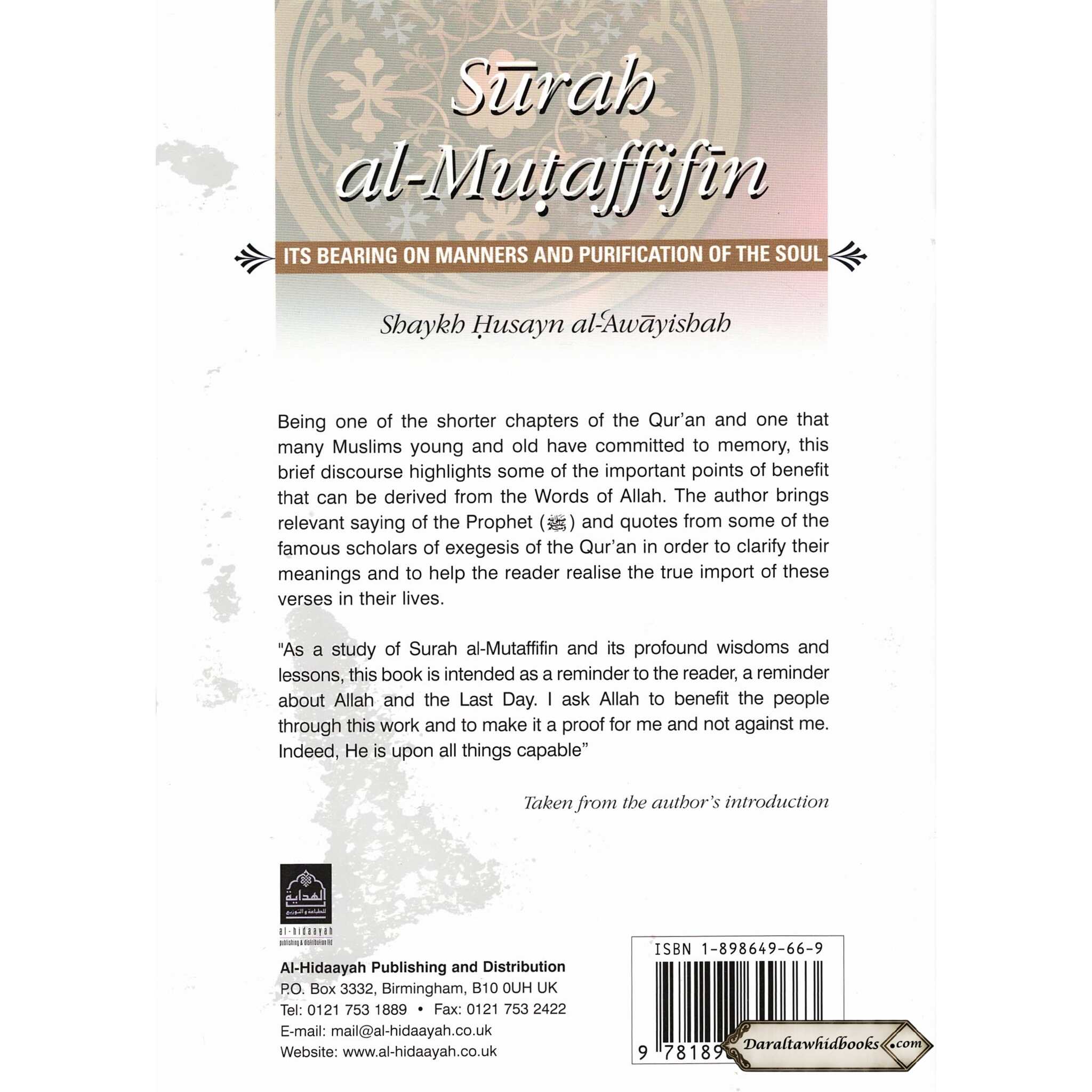 Shaykh Husayn al-Awayishah's commentary on "Surah al-Mutaffifin" is insightful and informative in this work. This book takes readers on a spiritual journey through the Quran's complexity, uncovering its meanings, lessons, and profound insights. Shaykh al-Awayishah navigates the verses of Surah al-Mutaffifin with deep knowledge and eloquence, presenting a holistic understanding that resonates with readers' hearts and minds.
