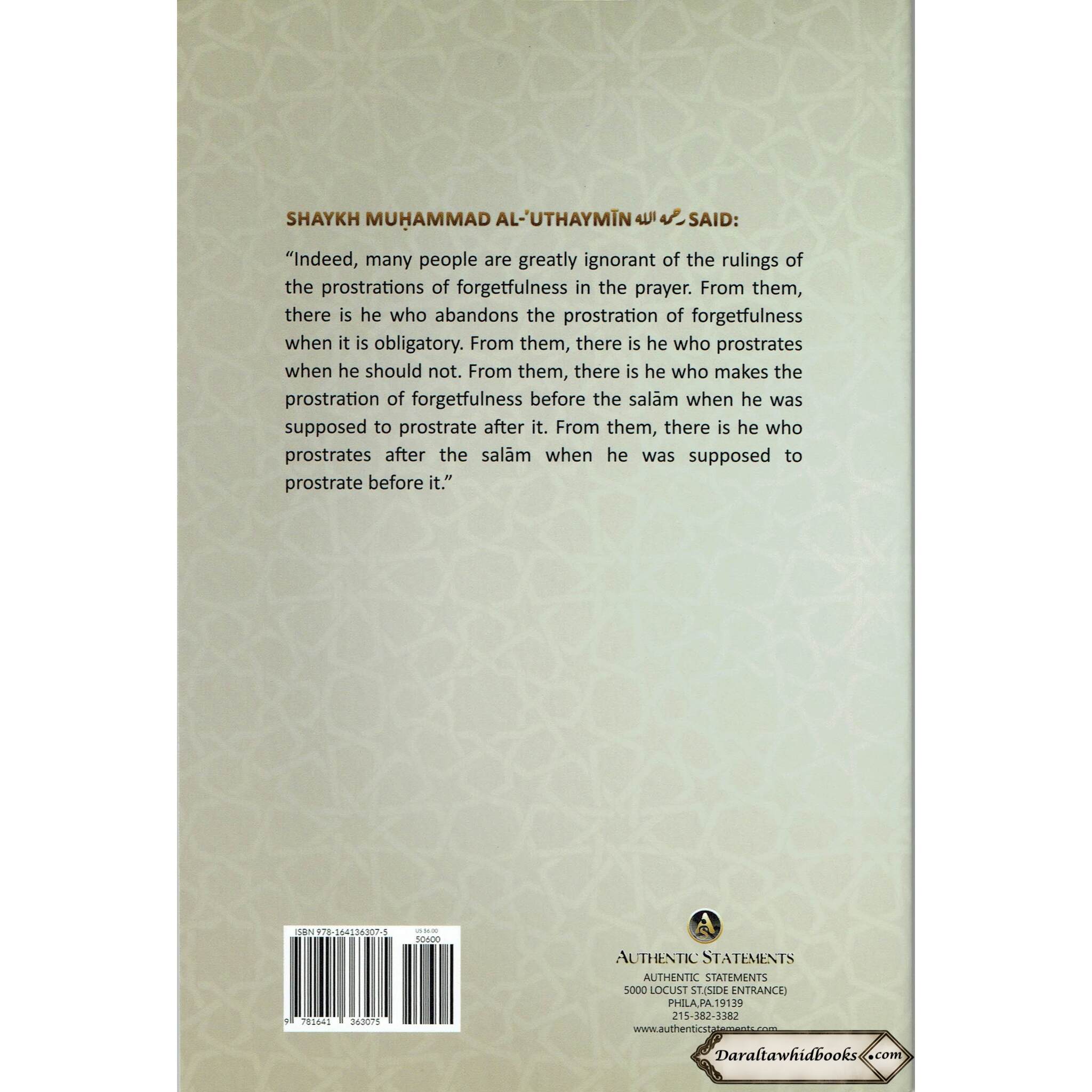 "An Explanation of Shaykh Muhammad Bin Salih Al-Uthaymin's Treatise on The Prostrations of Forgetfulness," by Shaykh Muhammad Raslan, is a thorough explanation of a treatise authored by Shaykh Muhammad Bin Salih Al-Uthaymin. The book is about "Prostrations of Forgetfulness" in Islamic prayer. Shaykh Muhammad Raslan dives into Shaykh Muhammad Bin Salih Al-Uthaymin's teachings in this work, providing clarity and insights into the notion of Prostrations of Forgetfulness. When a worshipper forgets or makes a mistake during their prayer, they execute these prostrations.