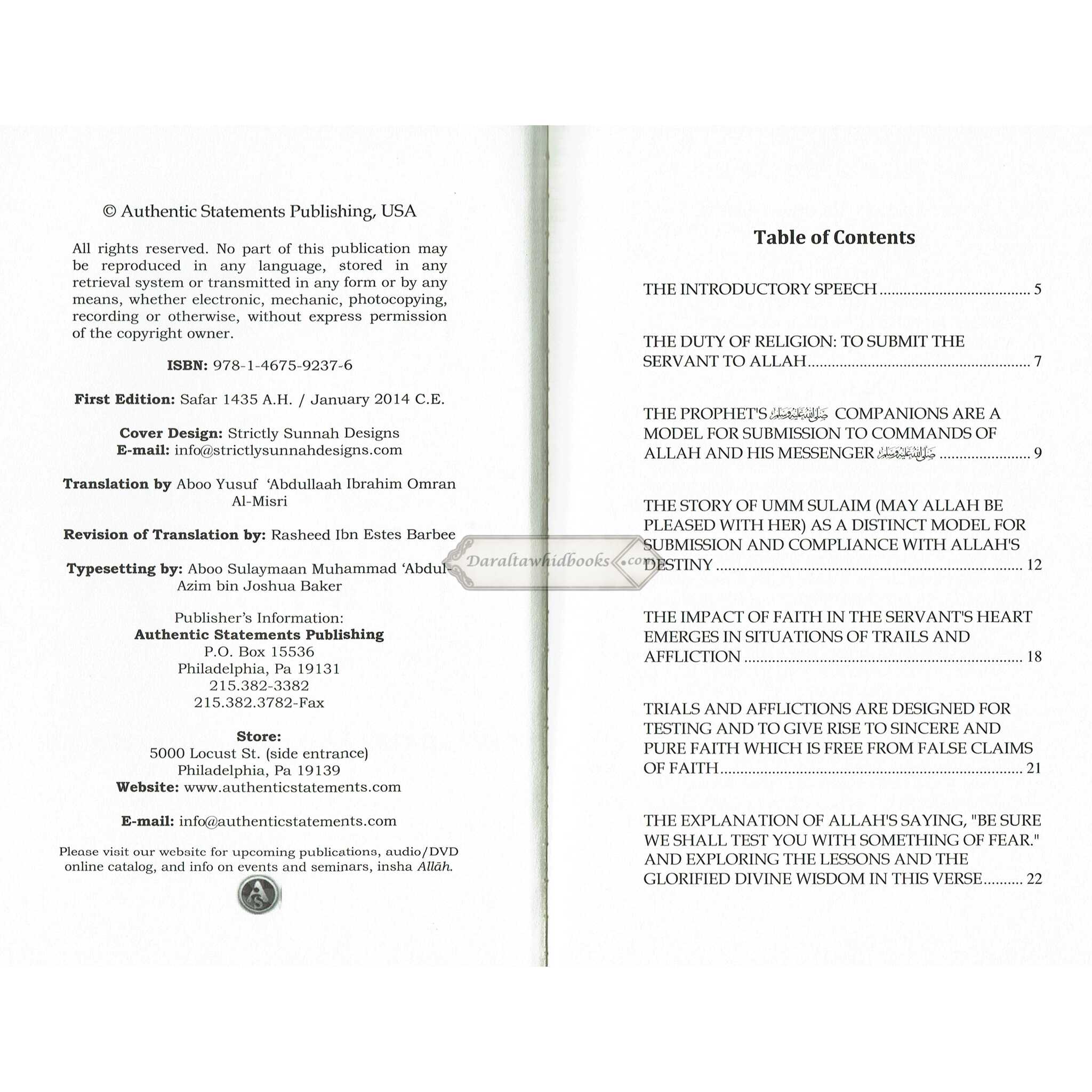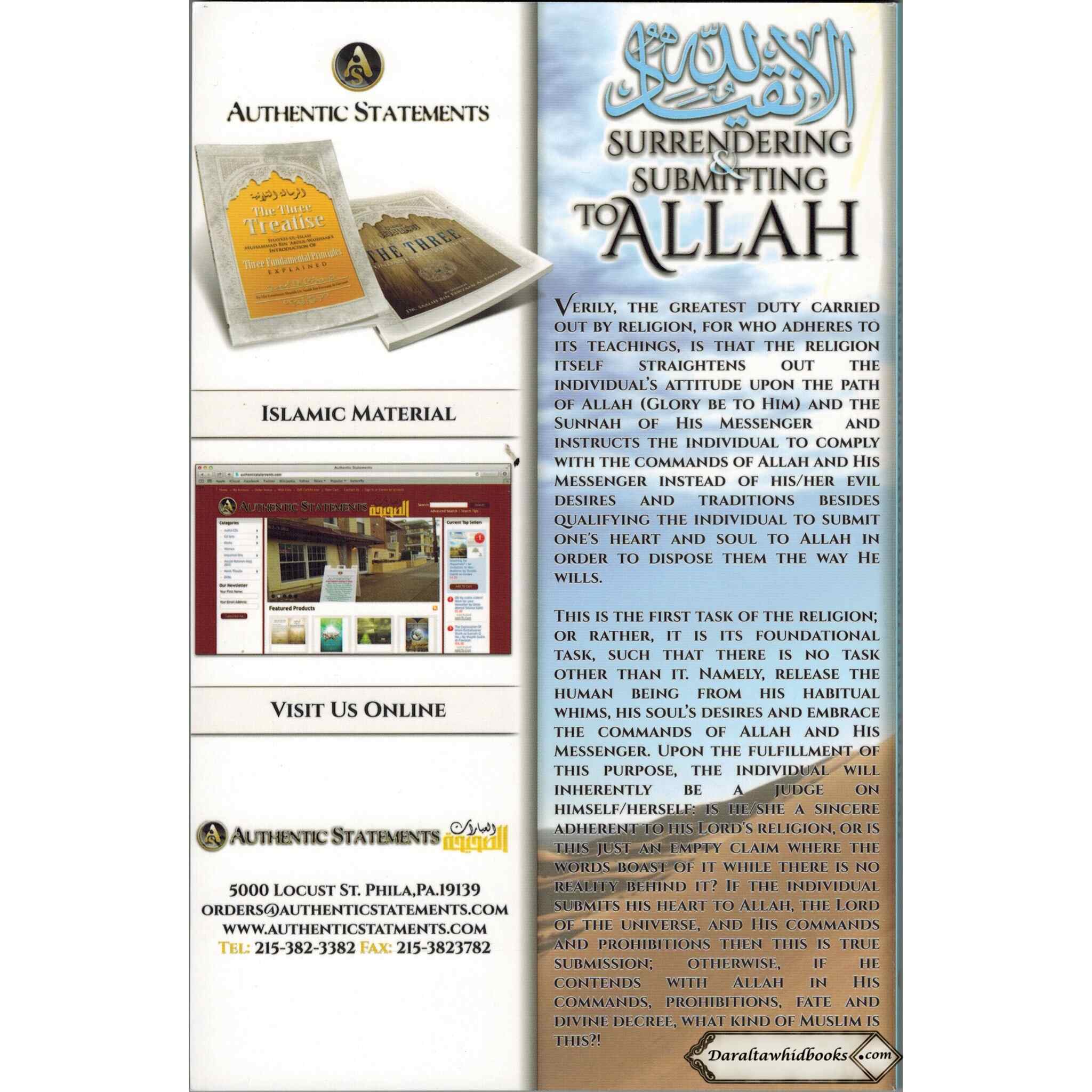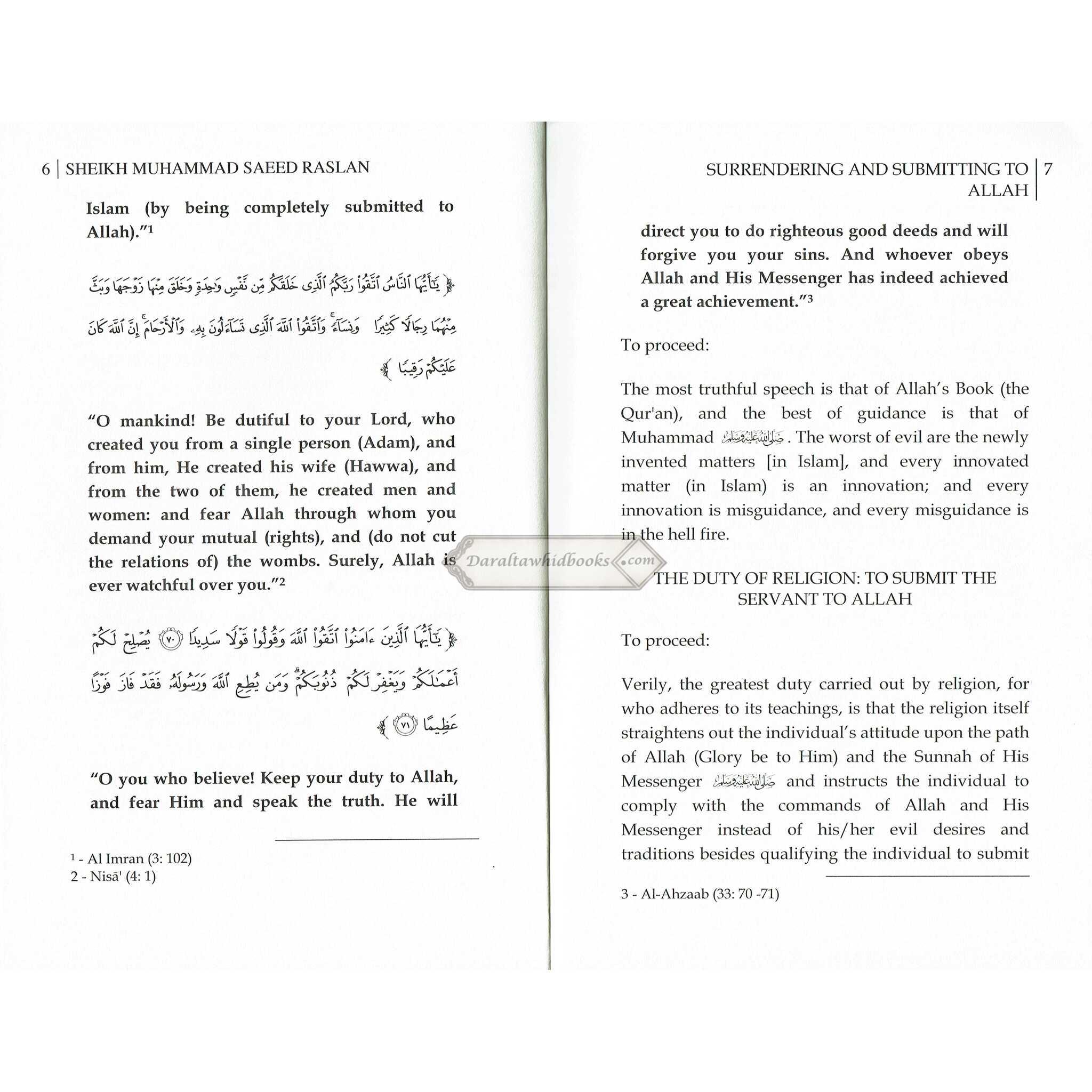 Shaykh Muhammad Raslan provides practical advice on how to use the principles of surrender and submission in one's daily life. He gives readers concrete strategies to help them develop their religion and align their behavior with their beliefs.