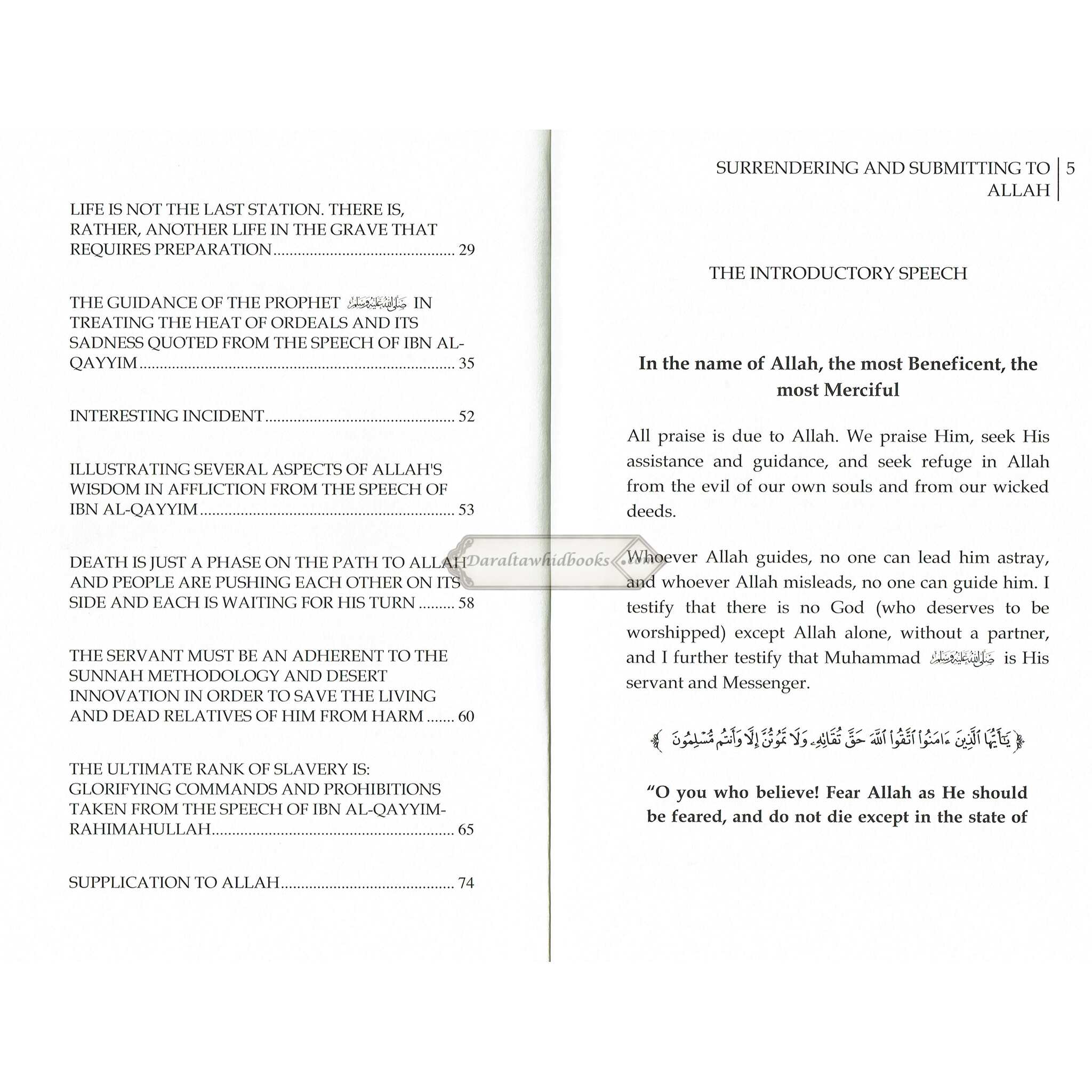 The book pulls from the Quran, Hadith (Prophet's sayings), and the wisdom of Islamic scholars to present a comprehensive and authentic vision of surrendering to Allah.