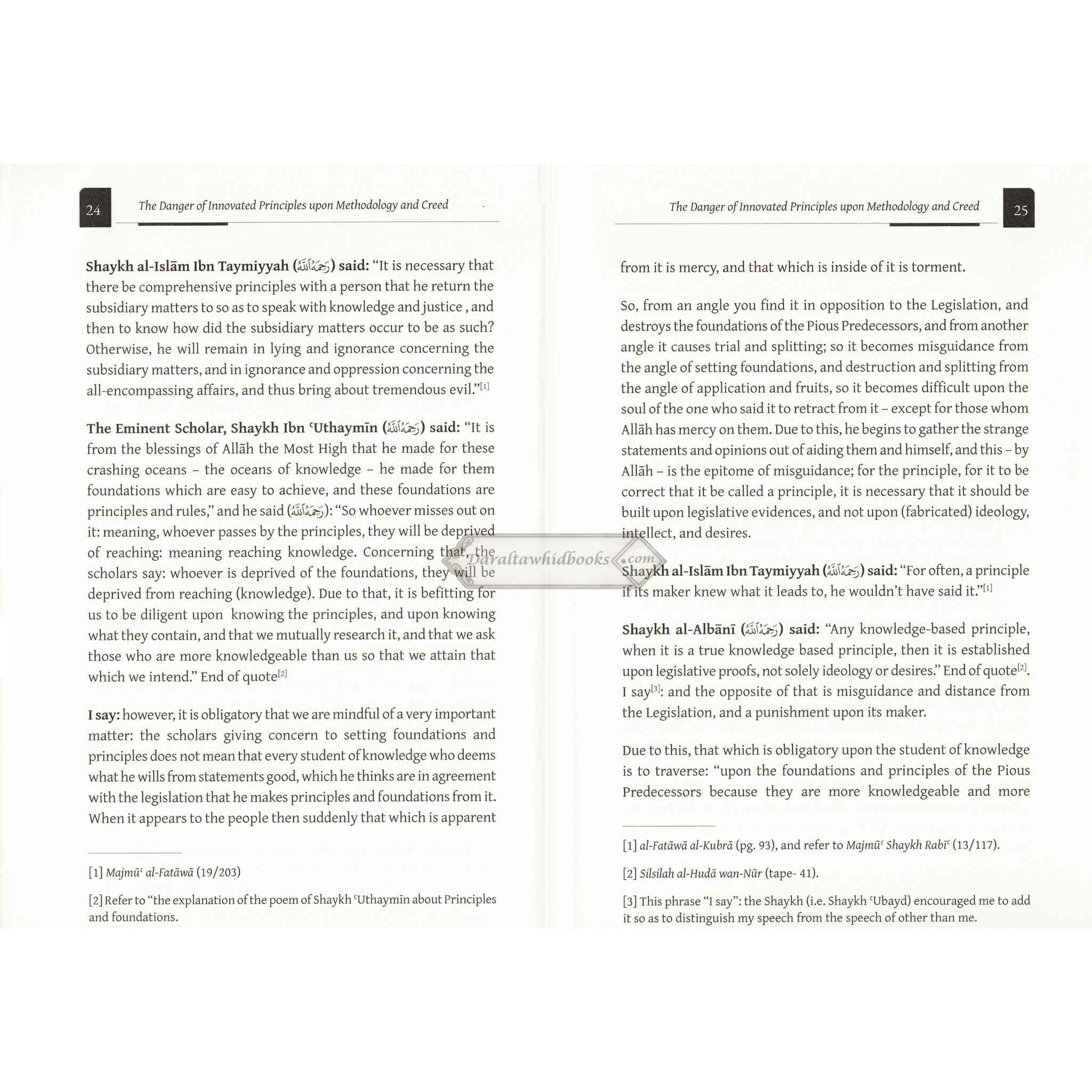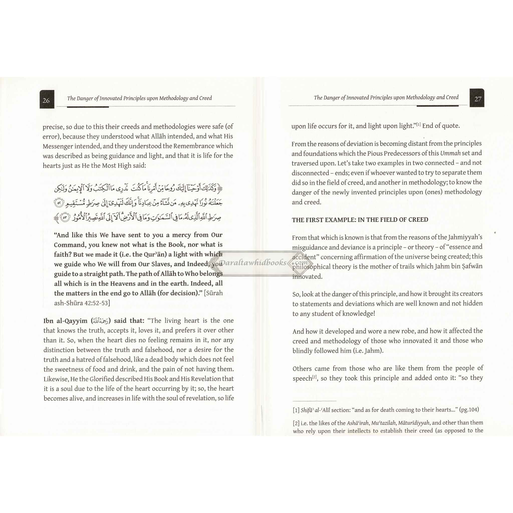 Shaykh Hasan al-Mardawi offers an invaluable analysis of how innovated principles (bid'ah) can affect the Islamic Methodology (manhaj) and Creed ('aqeedah) in this beneficial work titled; The Danger of Innovated Principles Upon Methodology & Creed. Using messages from the Quran and Sunnah as appropriate, this book stands as a valuable critique of Muslims' ignorance of the Holy book's teachings and a cautionary tale against relying on resources other than the Quran and Sunnah for guidance.