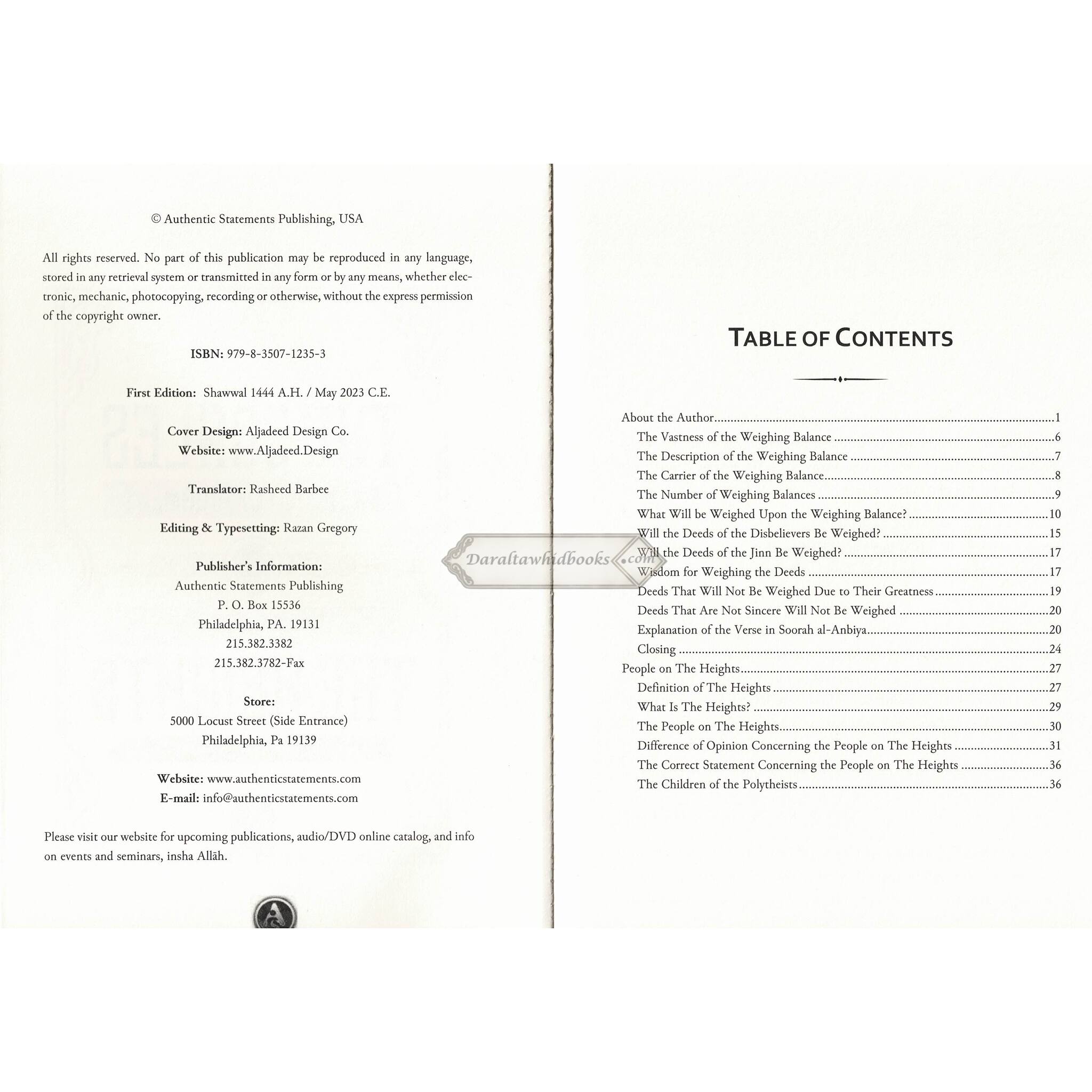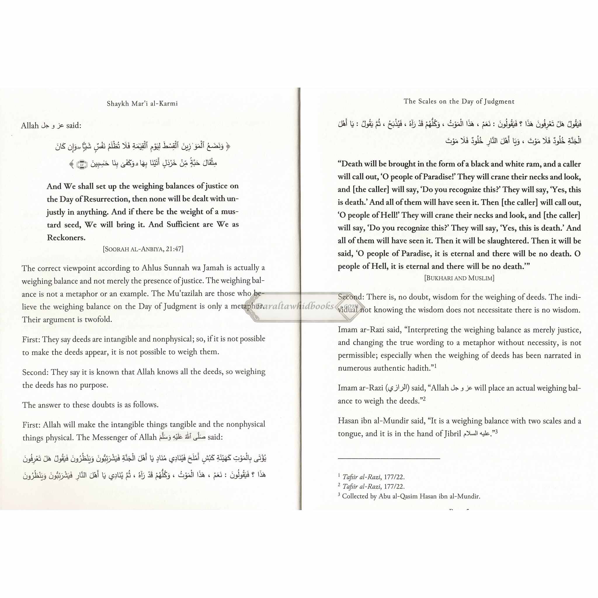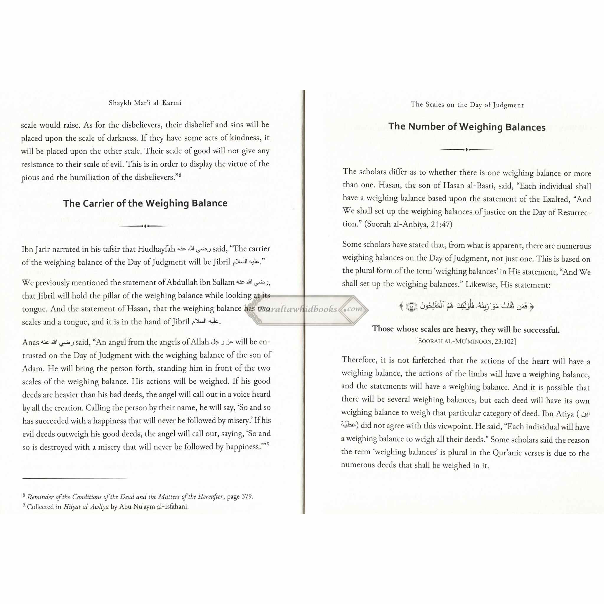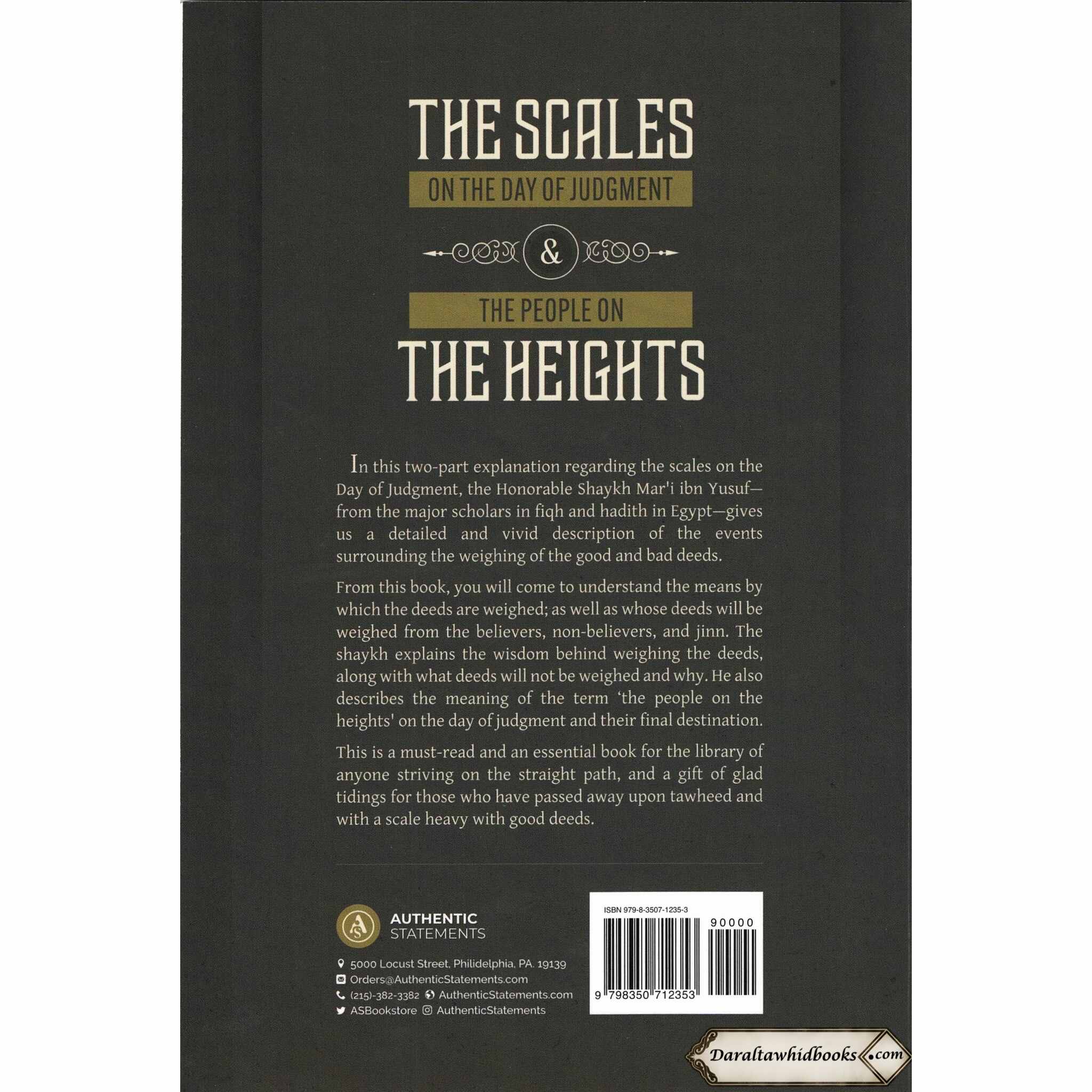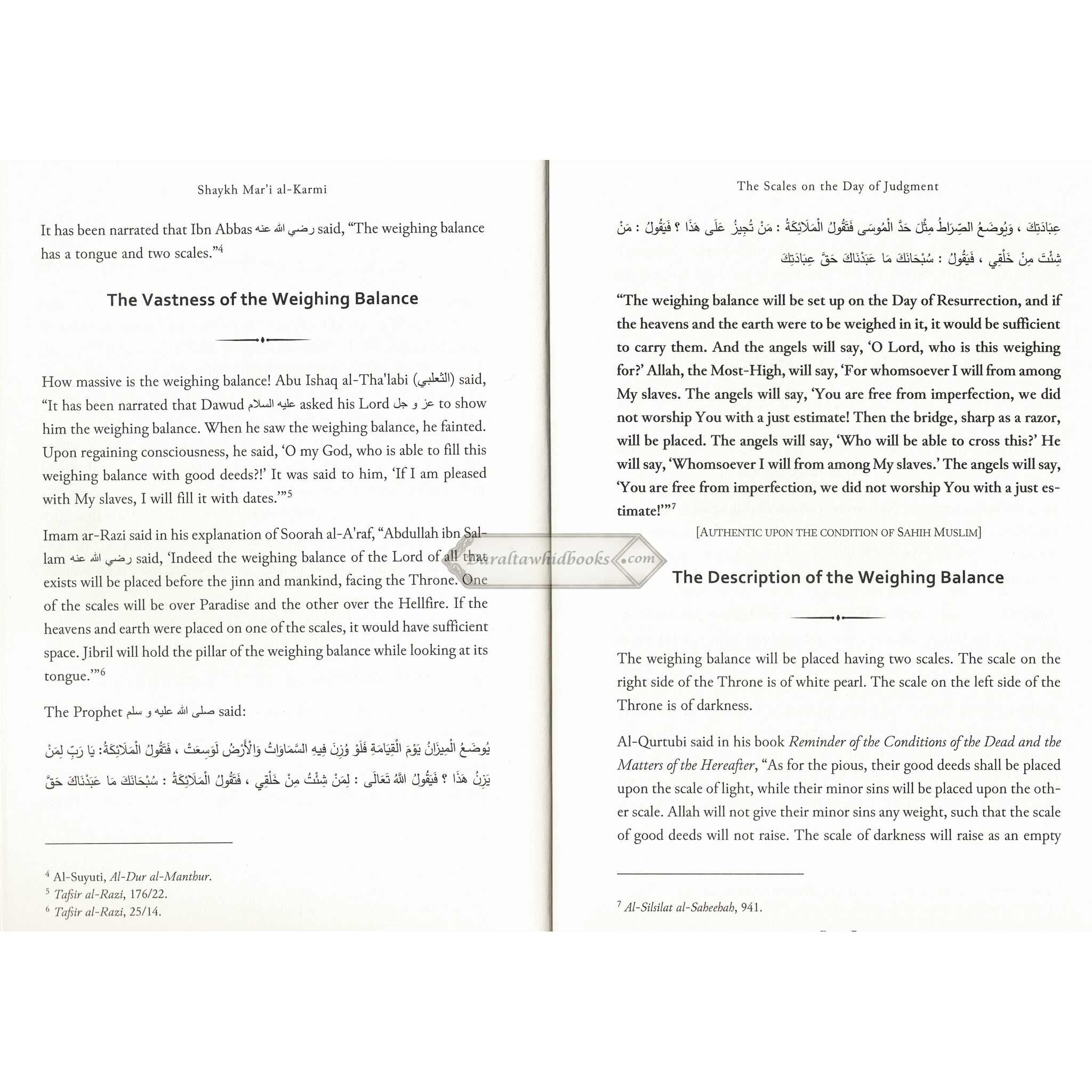 Shaykh Mari Al-Karmi, noted for his intellectual approach to Islamic teachings, examines the scales on the Day of Judgment with painstaking precision. This book provides an in-depth understanding of the divine justice that will be revealed as deeds are weighed, illuminating the relevance of this important feature of the hereafter.