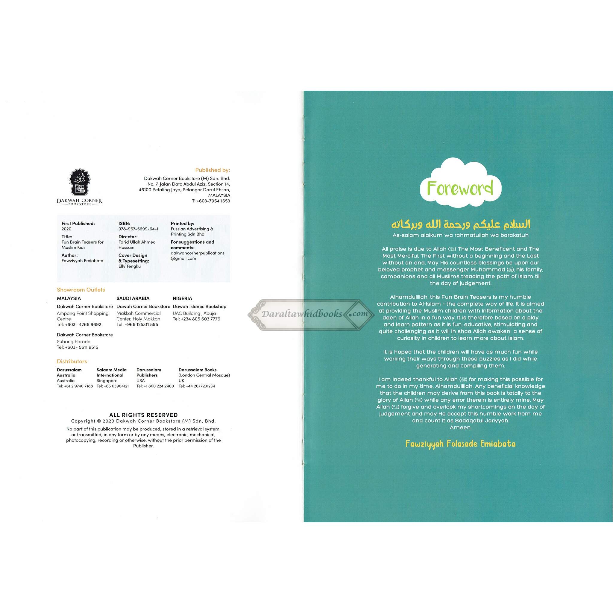 With "Fun Brain Teasers for Muslim Kids," children may have fun while learning about vital Islamic topics. The book is an excellent resource for parents and educators looking to promote learning in a fun way. Fawziyyah Emiabata's book promotes a healthy and engaging environment in which children can explore and improve their cognitive capacities while adhering to Islamic teachings. "Fun Brain Teasers for Muslim Kids" becomes a great tool for cultivating children's love of learning and connection to their faith by mixing fun and knowledge."Fun Brain Teasers for Muslim Kids" is a beautiful and engaging book that allows young readers to have fun while learning about Islamic beliefs. Fawziyyah Emiabata's inventiveness in creating brain teasers guarantees that children not only have a good time but also learn problem-solving abilities and have a greater appreciation for Islam.
