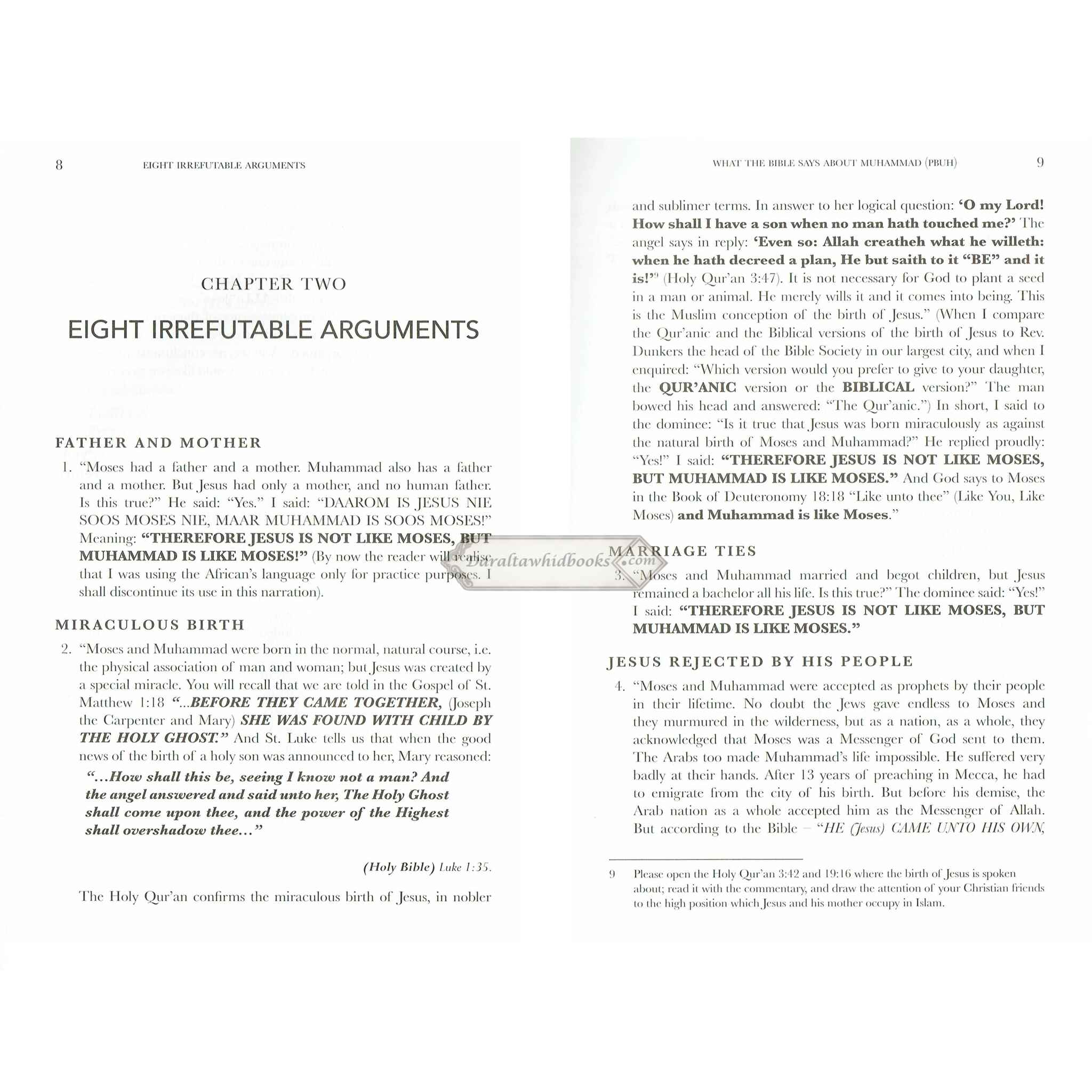 Although the book has a modest and high-quality binding on the outside, the information inside retains Deedat's distinctive attention-grabbing style, with bold and capitalized text used liberally throughout to stress crucial ideas. It truly portrays this outstanding personality's individual style.