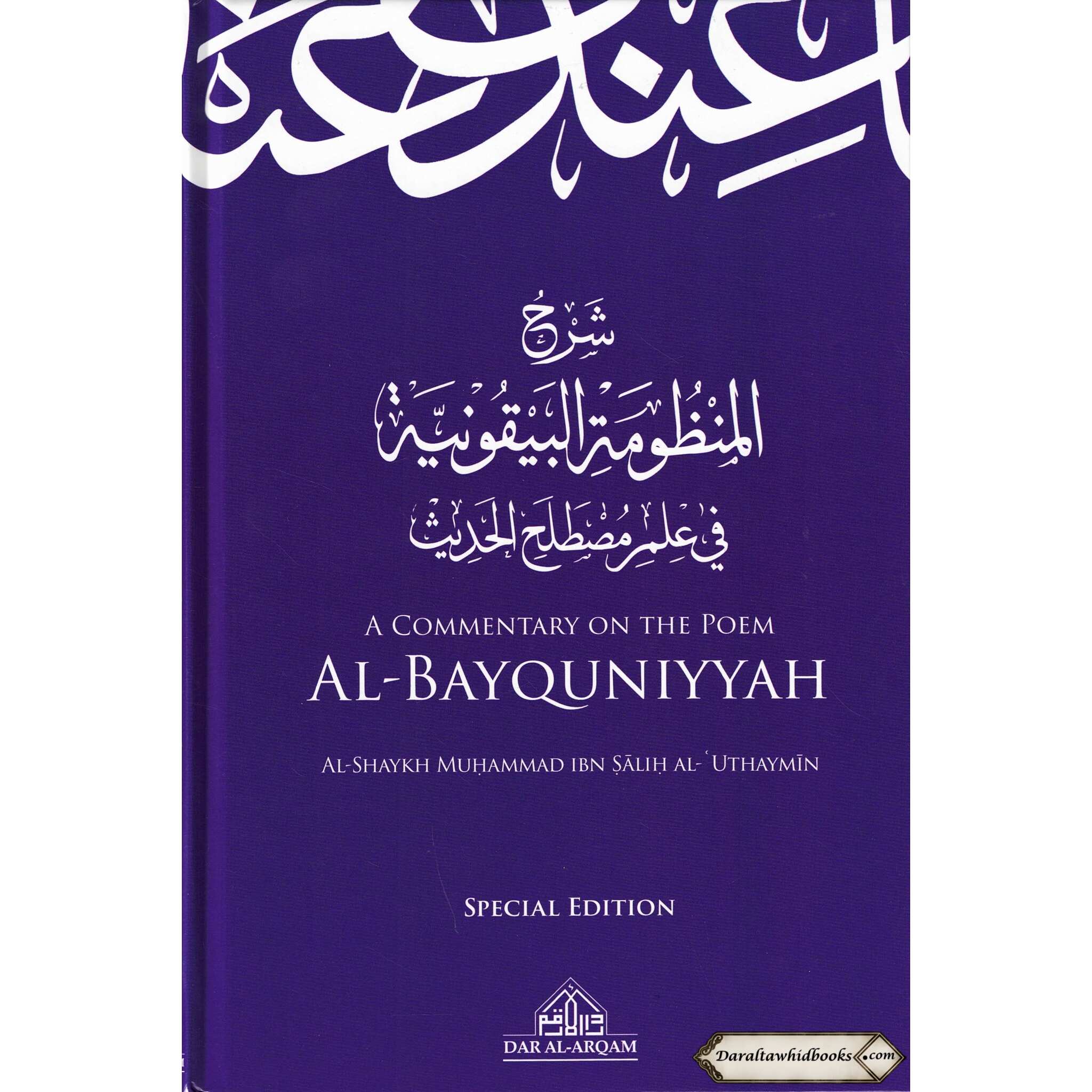 A commentary on the famous poem in the field of hadith sciences entitled al-Manzumah al-Bayquniyyah by Shaykh Muhammad ibn Saalih al-Uthaymeen (Rahimahullah) The Merits of the Poem of al-Bayquni Shihab al-Din al-Dimyathi said, "The poem of the knowledgeable Imam of understanding and perception, al-Shaykh al-Bayquni (Rahimahullah) is one of the most interesting summaries of the science of hadith and the most eloquent of the writings upon which one takes the rigorous course upon, for it is comprised of clear yet fine expressions that overwhelms its counterparts with a grim face.