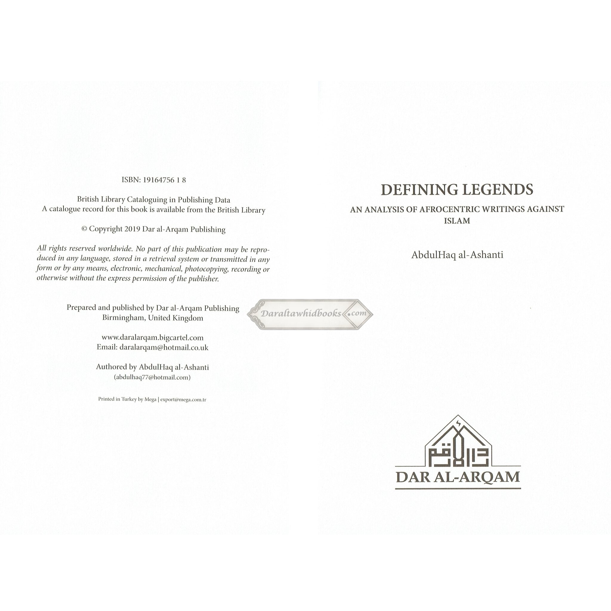 Defining Legends' also demonstrates that much of Afrocentric thinking about Islam has European Christian, Freemason, and Zionist roots. AbdulHaq, the author, has lived and traveled extensively throughout Africa and the Middle East. He was one of the key creators of the ICO Islamic Studies Curriculum initiative in Riyadh in 2004, which is a vital resource for Islamic education. He has also authored and translated several works into English."