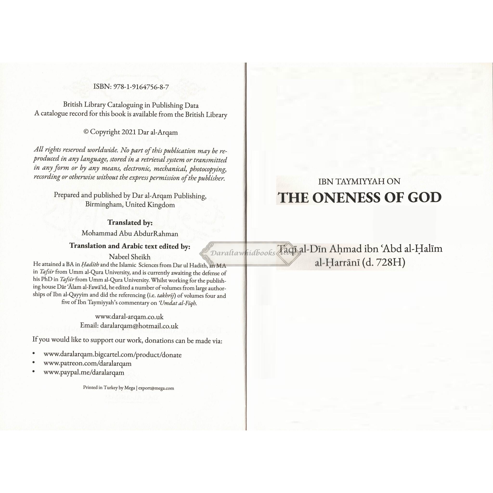 Publisher: Dar al-ArqamIbn Taymiyyah on The Oneness of God