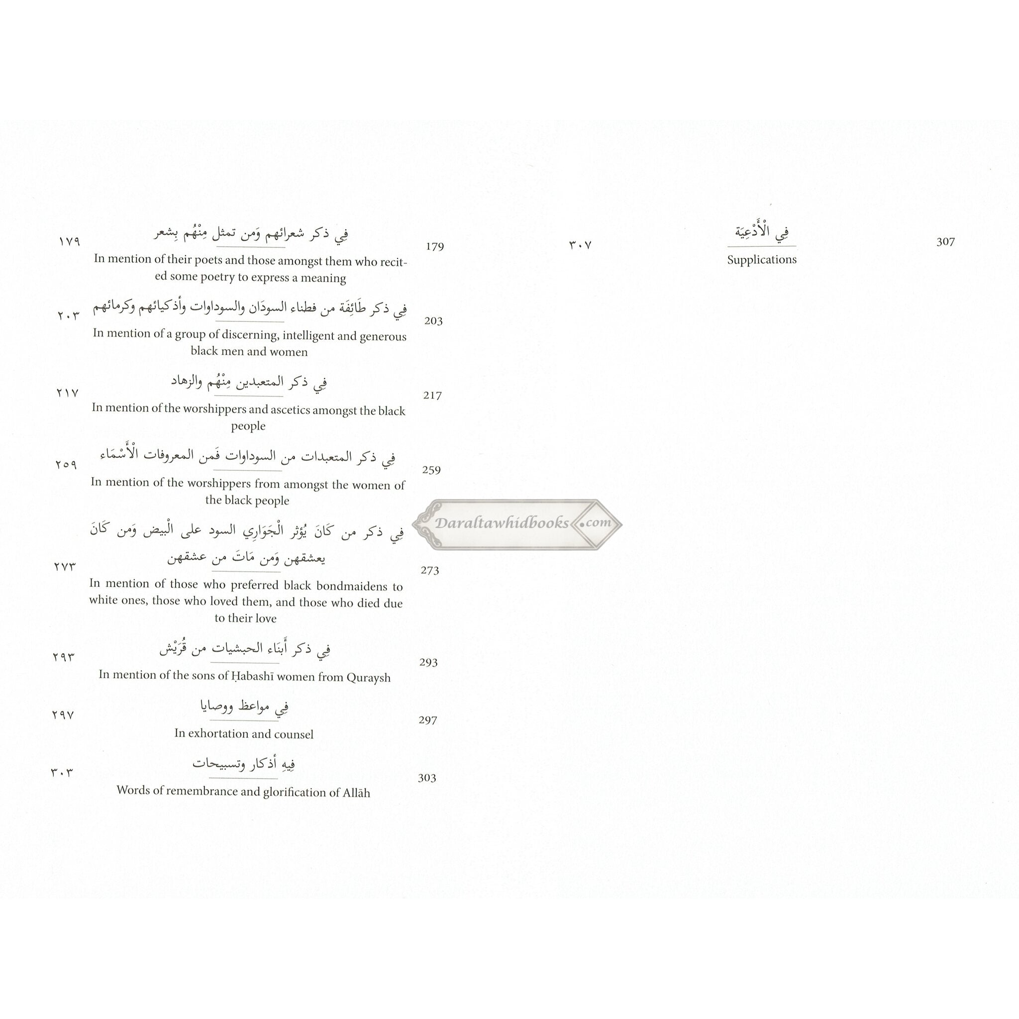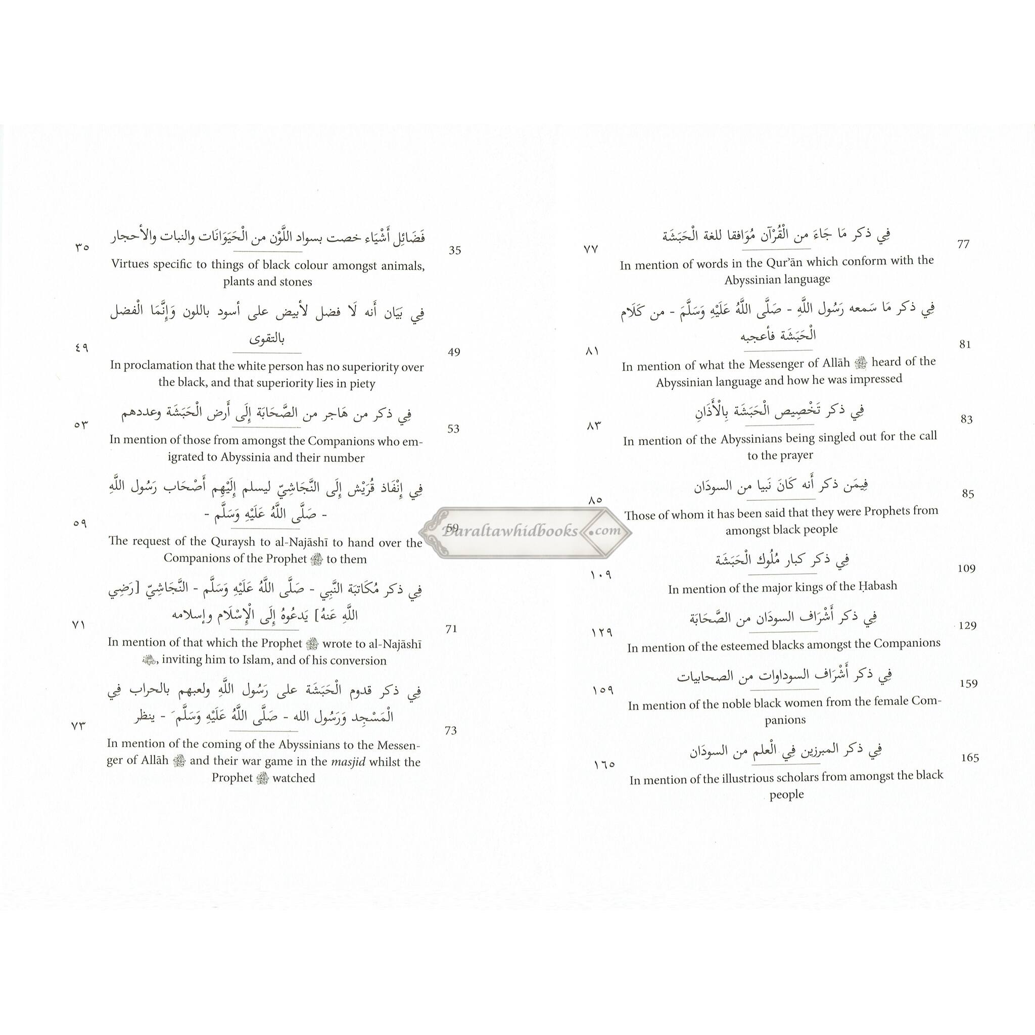 Ibn al-Jawz, the book's author, stated that he once encountered several decent Ethiopian (abash) individuals who were depressed because of their dark skin tone. He emphasized to them that a person's good acts, not their beauty, are what genuinely count. He published this book to highlight the values and accomplishments of numerous abash and black people, demonstrating that their value is not dictated by their skin color.
