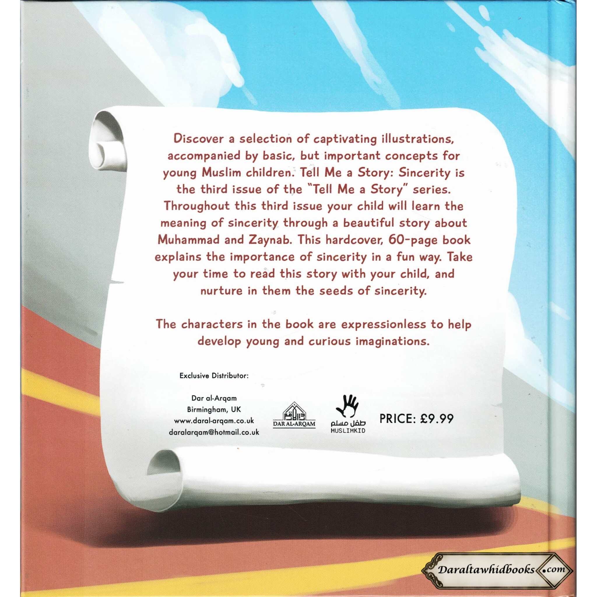 Explore a collection of captivating images that provide young Muslim children with simple yet important lessons. In the "Tell Me a Story" series, "Tell Me a Story: Sincerity" is the third book. Your youngster will learn about sincerity in this book by reading the lovely story of Muhammad and Zaynab. This 60-page hardcover book provides a fun explanation of the value of sincerity. Spend some time reading this story to your child while encouraging them to comprehend and demonstrate honesty. The lack of face emotions in the characters in the novel aids in piquing young readers' imaginations.