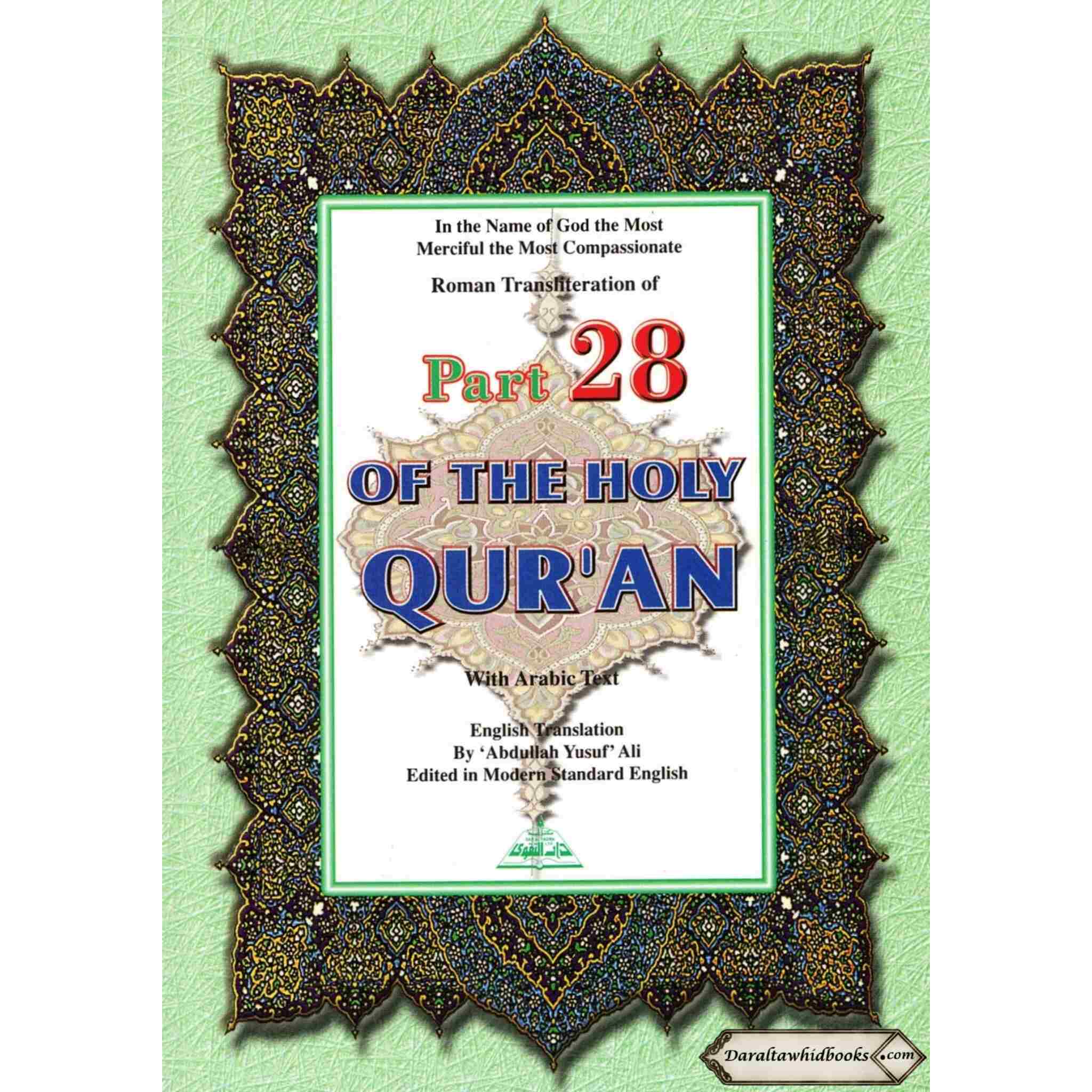The whole Arabic text of the 28th portion of the Holy Quran is at the center of this publication. Each passage is attentively presented, providing an unvarnished contact with the Quran's linguistic brilliance and artistic depth. This area covers a wide range of topics, including moral counsel, prophetic narratives, and meditations on the essence of existence.