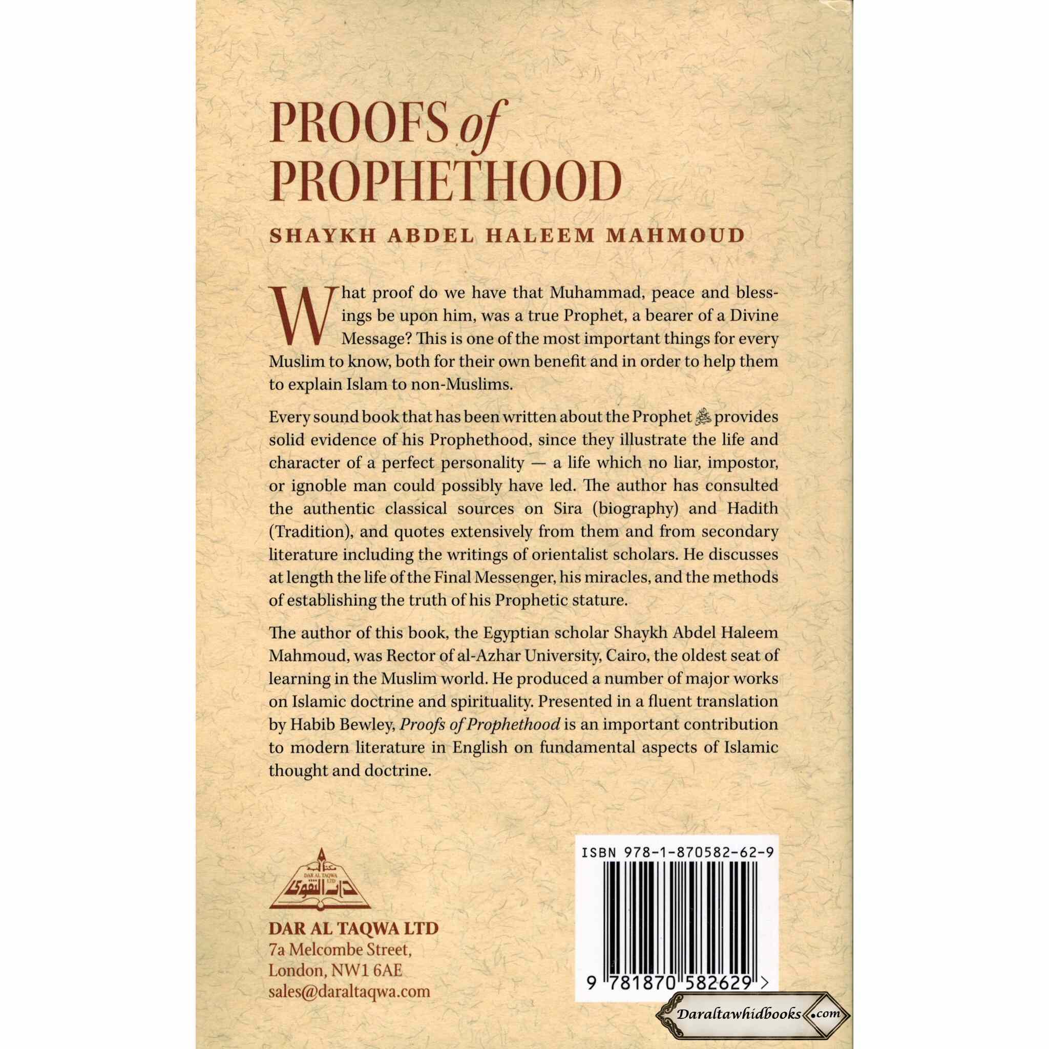 "Proofs of Prophethood" by Shaykh Abdel Haleem Mahmoud is a fascinating examination of the evidence and signs that confirm Muhammad's, peace be upon him, prophethood. Shaykh Mahmoud examines the multifarious proofs that support the legitimacy of the final messenger and the divine nature of his mission with scholarly rigor and a deep comprehension of Islamic beliefs.