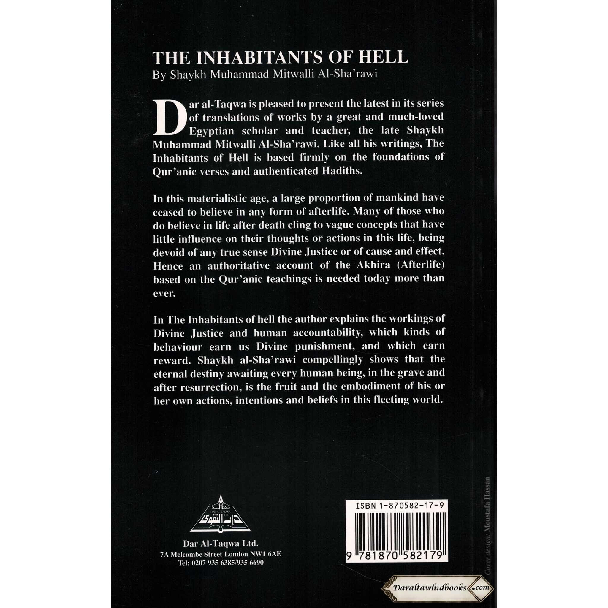 "The Inhabitants of Hell" by Shaykh Muhammad Mitwalli al-Sharawi is a thought-provoking analysis of the vivid accounts of the occupants of Hellfire in Islamic tradition. Shaykh al-Sharawi provides light on the doom that awaits those who depart from the road of righteousness, highlighting the essential necessity for spiritual introspection and commitment to Islamic principles, with a comprehensive comprehension of Quranic passages and Hadiths.