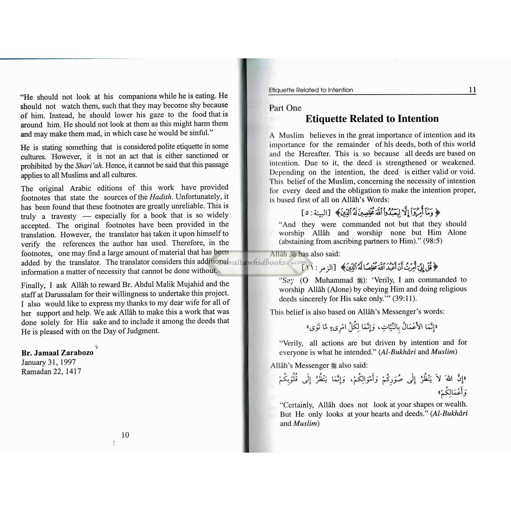 Islamic Etiquette- A Part From Minhaj-Ul-Muslim (The Way Of Muslim) By Abu Bakr al-Jazairi/Jamaal al-Din M. Zarabozo