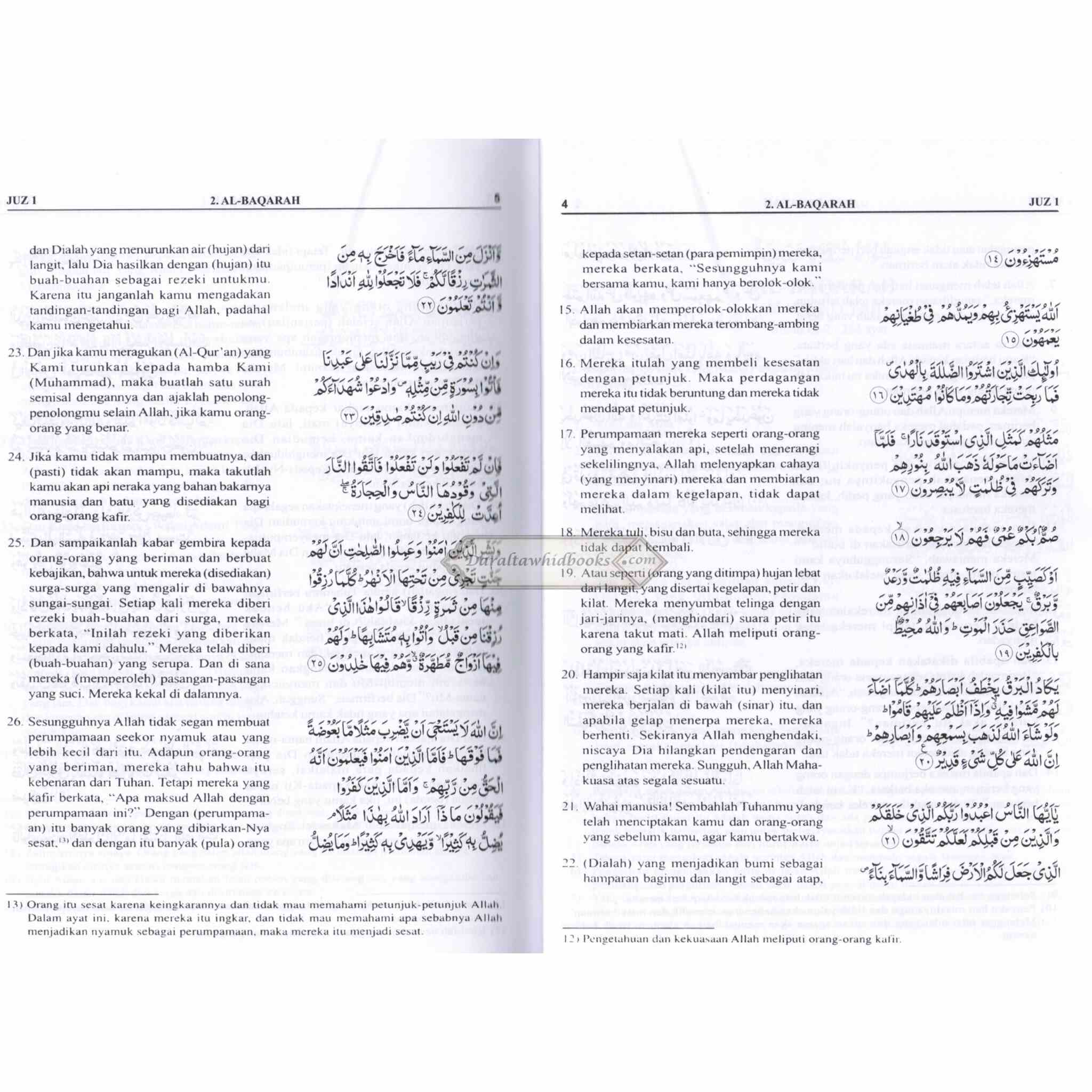 "Quran In Indonesian Language (Al Quran Dan Terjemahnya)" is a remarkable and extremely accessible edition of the Holy Quran that includes the sacred text in Arabic as well as a faithful and eloquent translation into Indonesian. This book is a valuable resource for Indonesian-speaking readers, allowing them to connect with the Quran's eternal wisdom, guidance, and spiritual teachings in their local language.