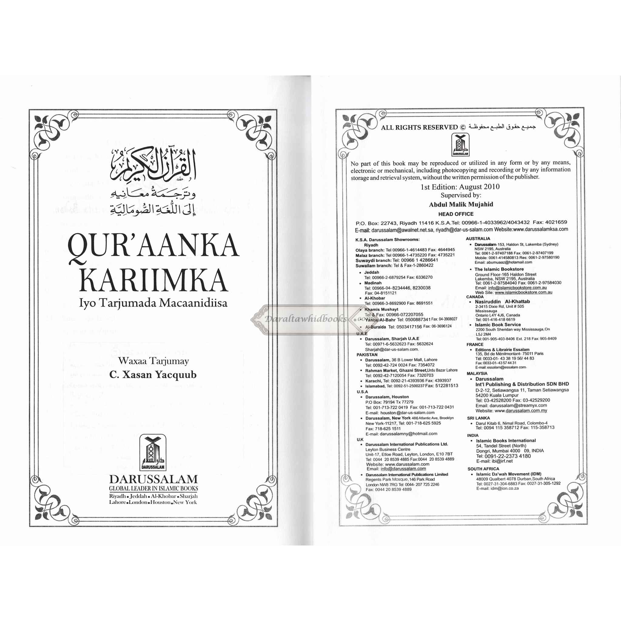 Quran in Somali Language Qur'aanka Kariimka iyo Tarjumada Macaanidiisa Arabic