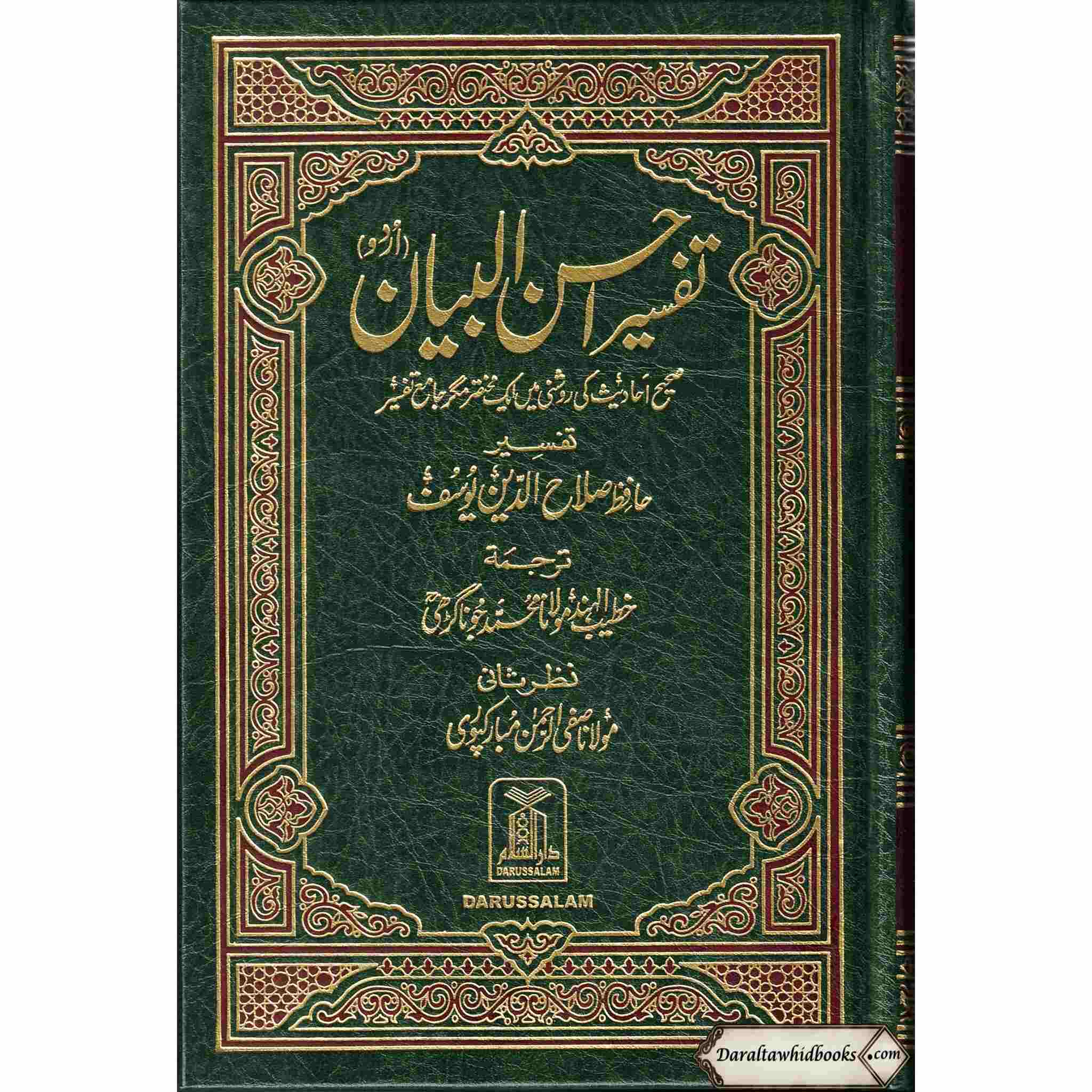 Tafseer Ahsan-ul-Bayan" is a medium-sized distribution that consolidates the first Arabic text with an intensive Urdu interpretation by Hafiz Salahuddin Yusuf. This version, composed by a famous Islamic researcher, is planned to give perusers a more profound handle of the implications and understandings of Quranic sections in a straightforward and open organization.