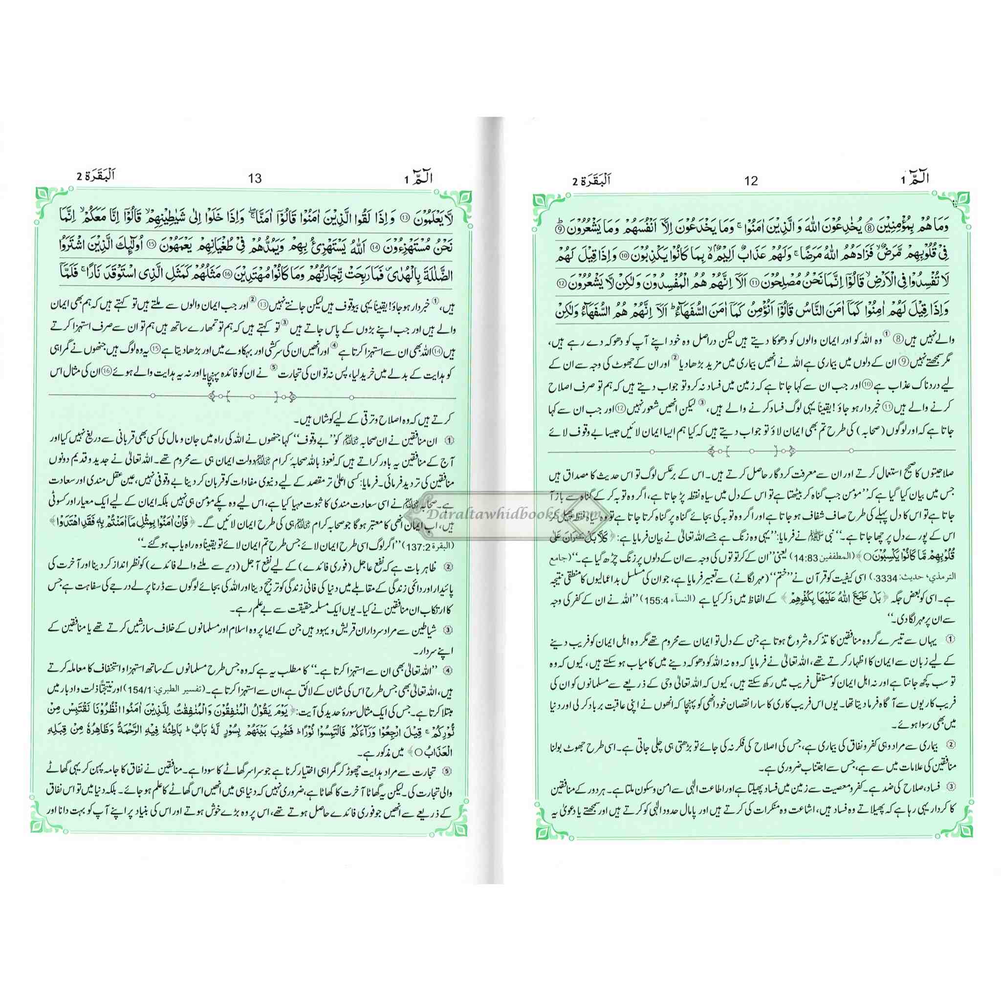 Tafseer Ahsan-ul-bayan Arabic with Urdu Language Translation (Medium Size) Green Page By Hafiz Salahuddin Yusuf