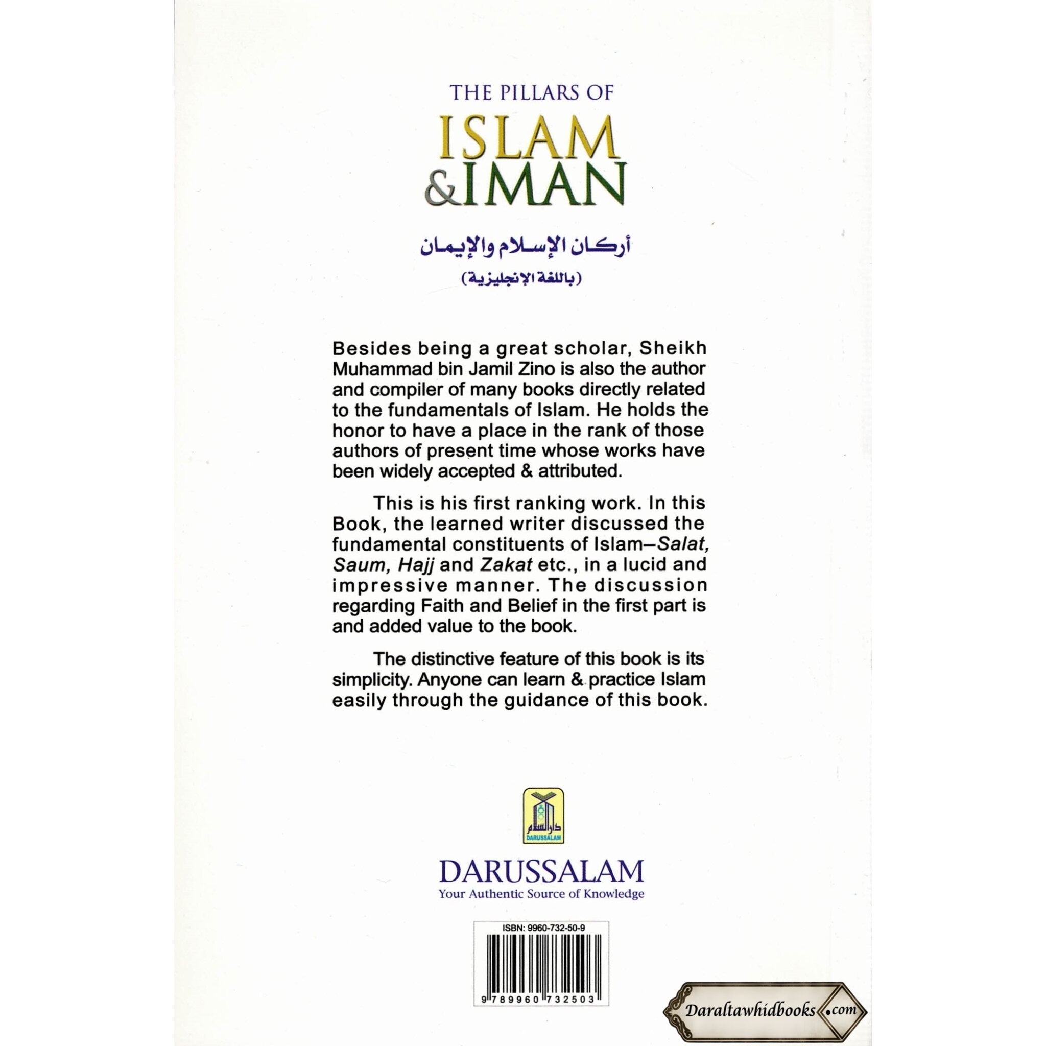 The instructive paperback "The Pillars of Islam and Iman, And what every Muslim must know about his religion By Muhammad bin Jamil Zino (Paperback)" will improve your knowledge of Islam and fortify your faith. Readers will take a profound journey of study into the fundamental ideas and customs of Islam within the pages of this fascinating book. The five pillars of Islam-Shahadah (Testimony of Faith), Salah (Prayer), Zakah (Charity), Sawm (Fasting), and Hajj (Pilgrimage)-are expertly dissected by the author with painstaking attention to detail. The author reveals the profound significance of each pillar while also emphasizing the useful applications and spiritual advantages that result from their serious adherence through rigorous examination and explanation. Besides being a great scholar, Sheikh Muhammad bin Jamil Zino is also the author and compiler of many books directly related to the fundamentals of Islam. He holds the honor to have a place in the rank of those authors of the present time whose works have been widely accepted & attributed.This is his first ranking work. In this Book, the learned writer discussed the fundamental constituents of Islam: Salat (prayer), Saum (fasting), Hajj and Zakat, etc., in a lucid and impressive manner. The discussion regarding Faith and Belief in the first part is an added value to the book The distinctive feature of this book is its simplicity. Anyone can learn & practice Islam easily through the guidance of this book.