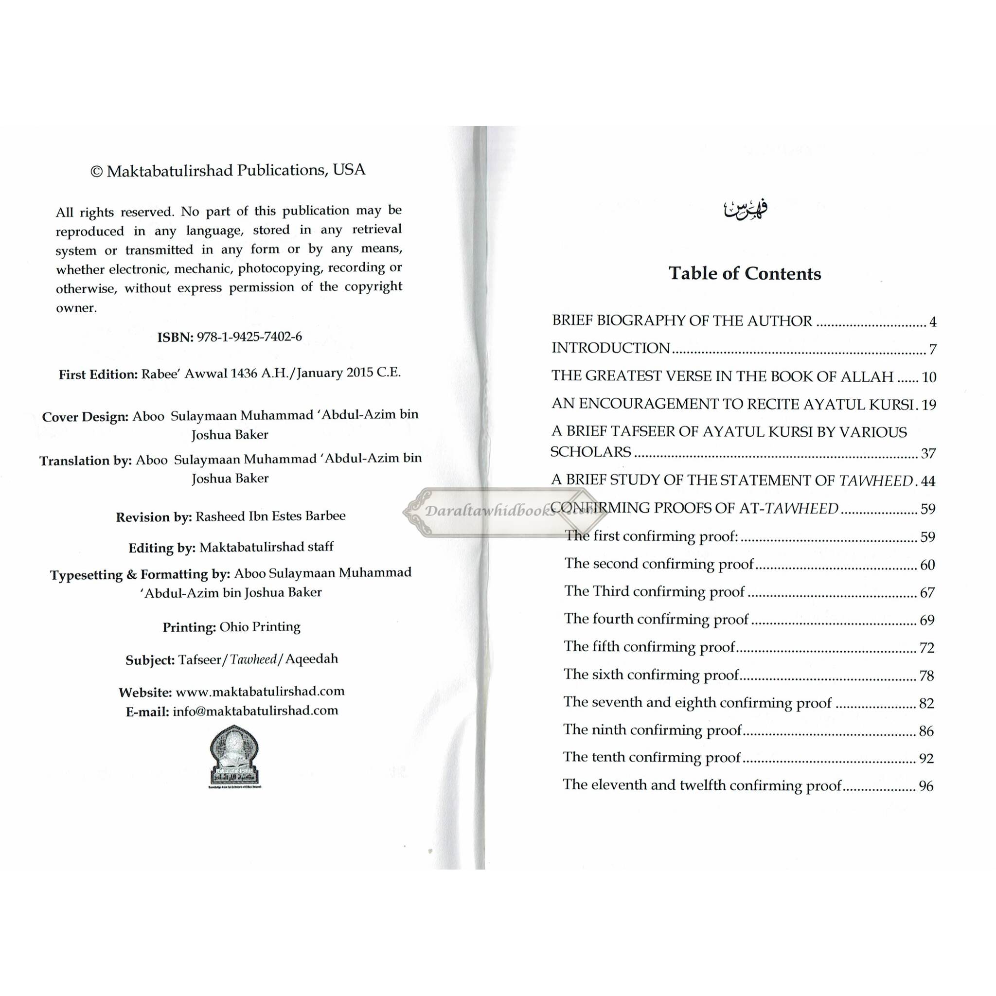 Shaykh Abdur Razzaq al-Abbaad dissects Ayatul Kursi word by verse in this work, revealing its many levels of significance, relationship to the rest of the Quran, and significant ramifications for a believer's faith and soul. The author delves deeper into the idea of Tawheed, highlighting its importance in Islamic theology as well as its ramifications for a believer's connection with Allah.