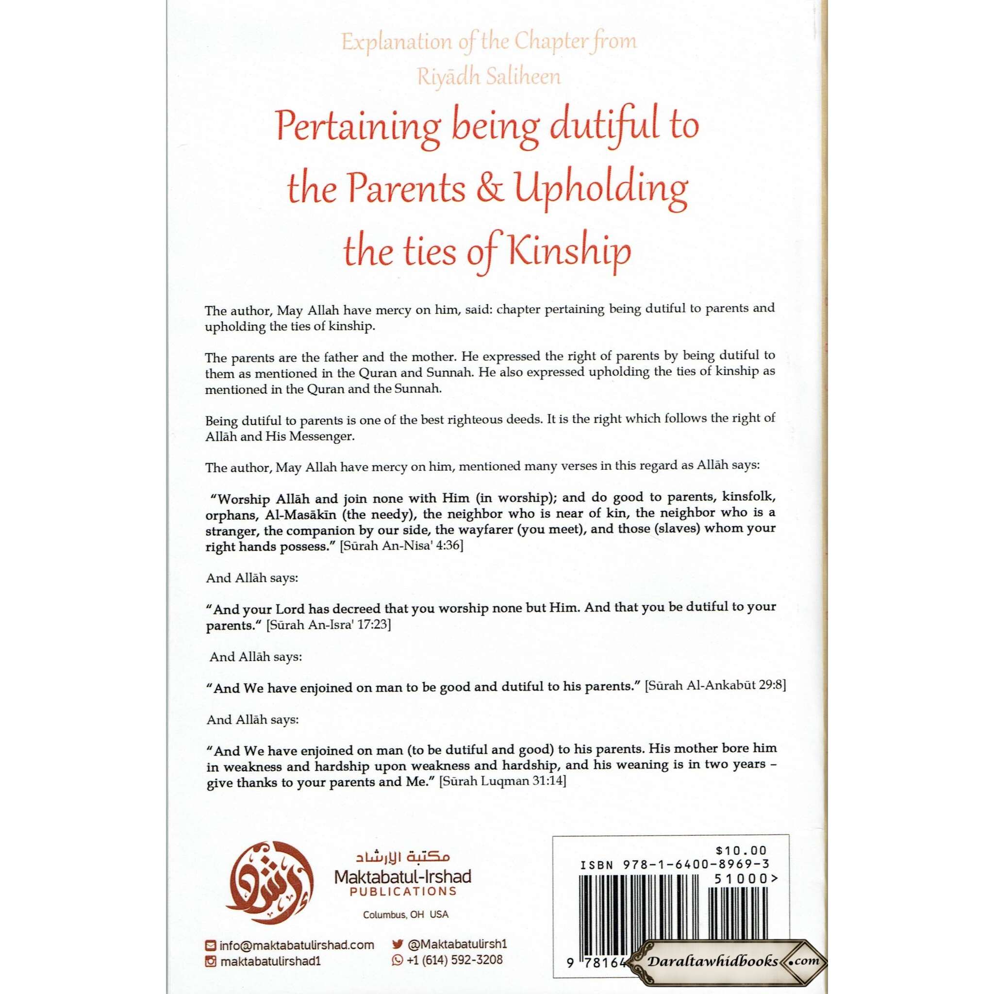 Explanation Of The Chapter From Riyaadh Saliheen: Pertaining Being Dutiful To The Parents & Upholding The Ties Of Kinship By Imam an-Nawaawi