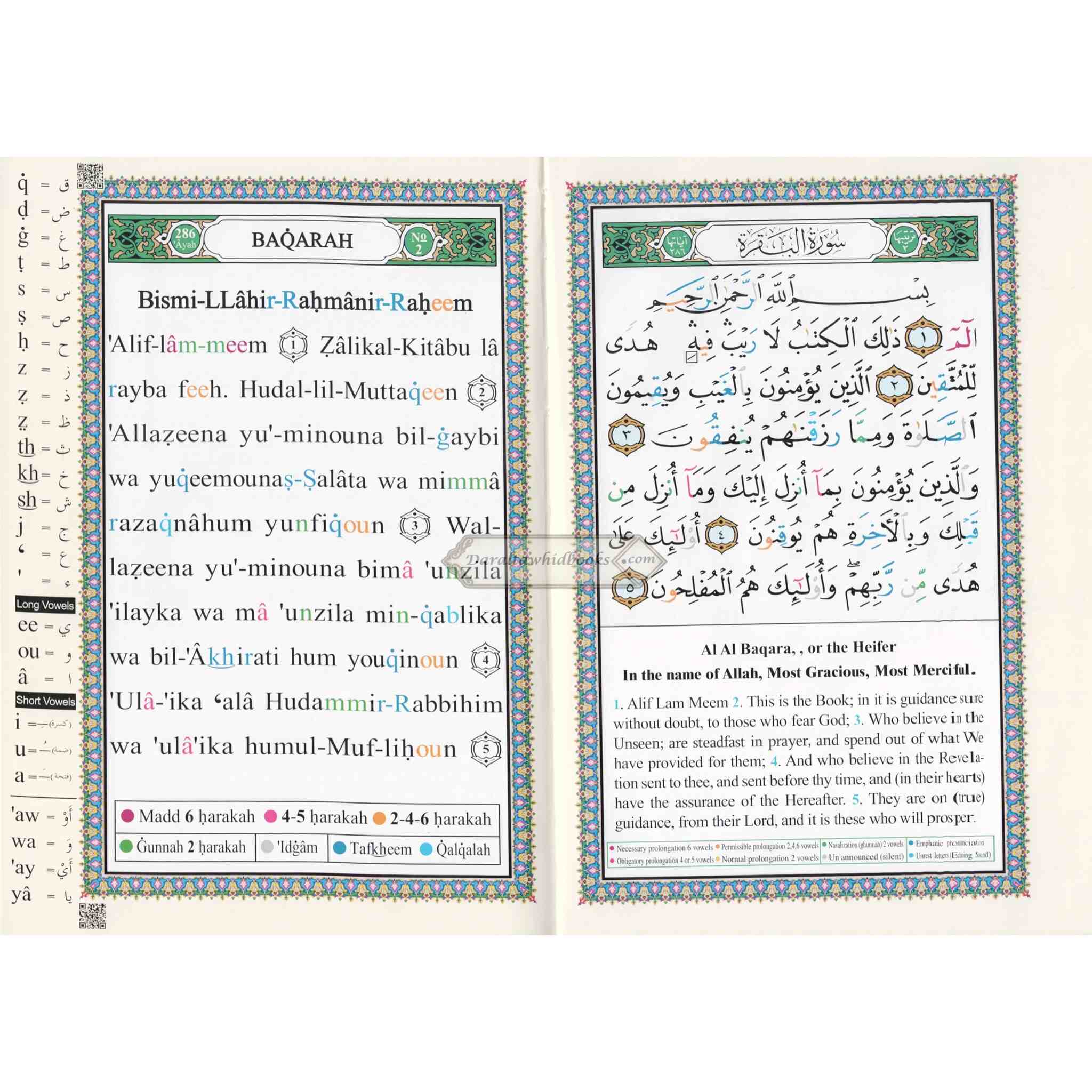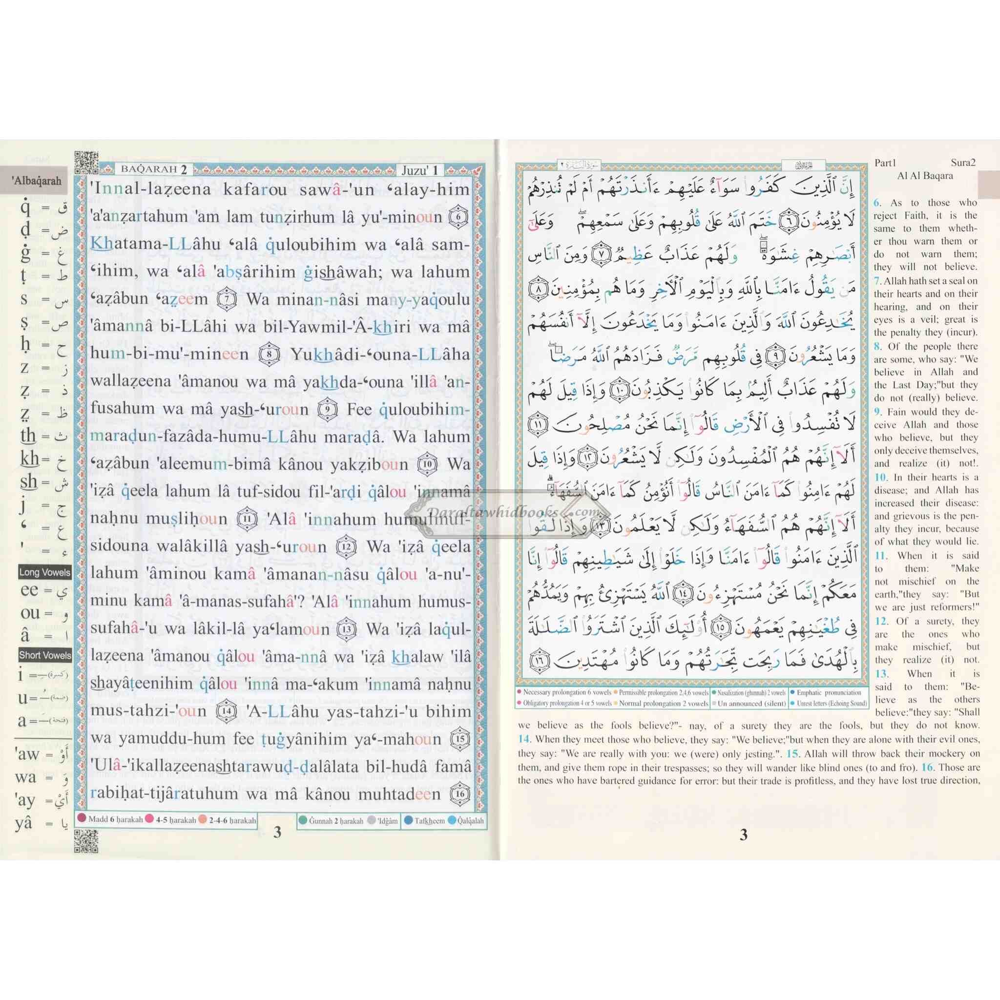 In this part, you can experience the synergy of Tajweed, translation, and transliteration, where each component enhances the others. The integration allows readers to appreciate the linguistic beauty, understand the meanings, and perfect their pronunciation all at the same time.