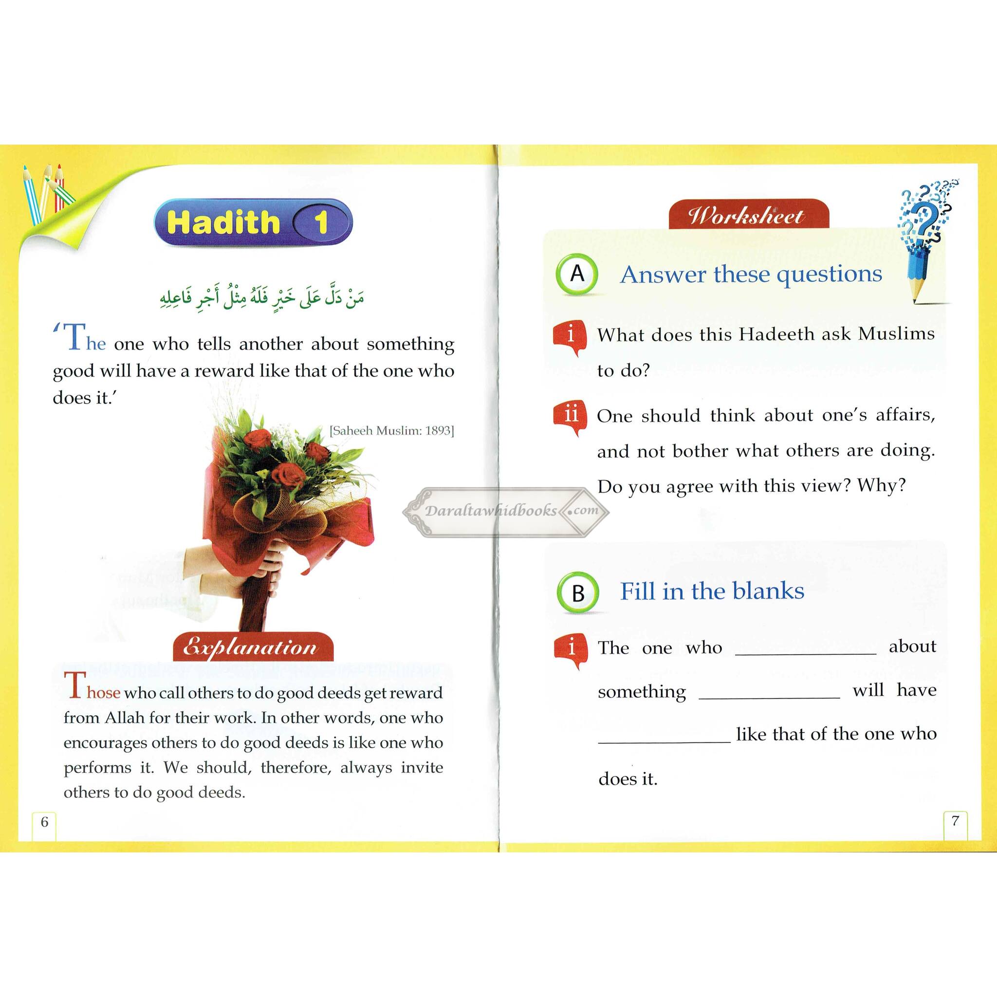 Each Hadith is complemented by practical examples and realistic events, helping children to learn how Prophet Muhammad's (SAW) teachings can be implemented in their everyday lives. This method fosters the linkage of Hadiths to real-life events.