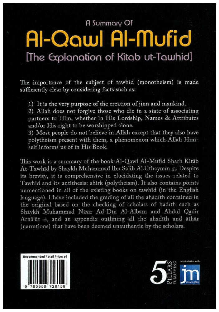 "A Rundown Of Al-Qawl Al-Mufid" decreases the first text, giving perusers a basic and reasonable comprehension of Tawhid and its importance in Islam.