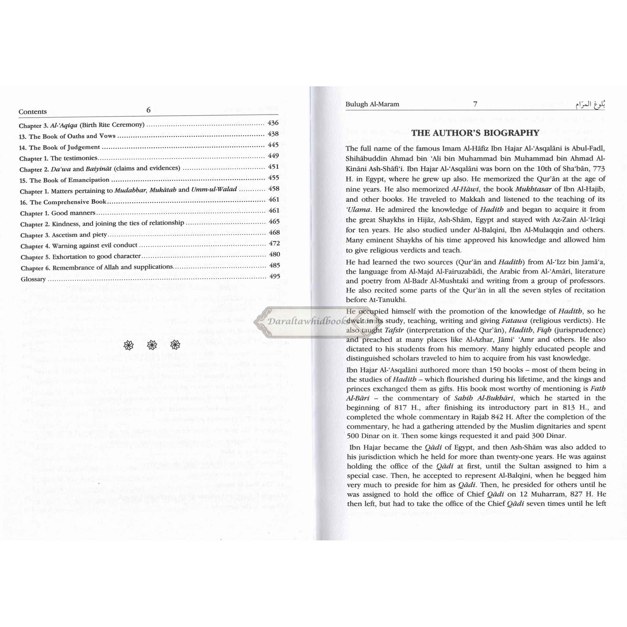 The renowned Hafiz Ibn Hajar Al-Askalani's "Bulugh Al-Maram" is a timeless classic of Islamic jurisprudence. The author methodically navigates the enormous geography of Hadith literature in this illuminating work, giving a complete compendium of traditions that guide believers toward the attainment of religious goals. This book is a lighthouse of information for individuals seeking a greater grasp of Islamic legal ideas, and it is renowned for its clarity, authenticity, and rigorous scholarship.