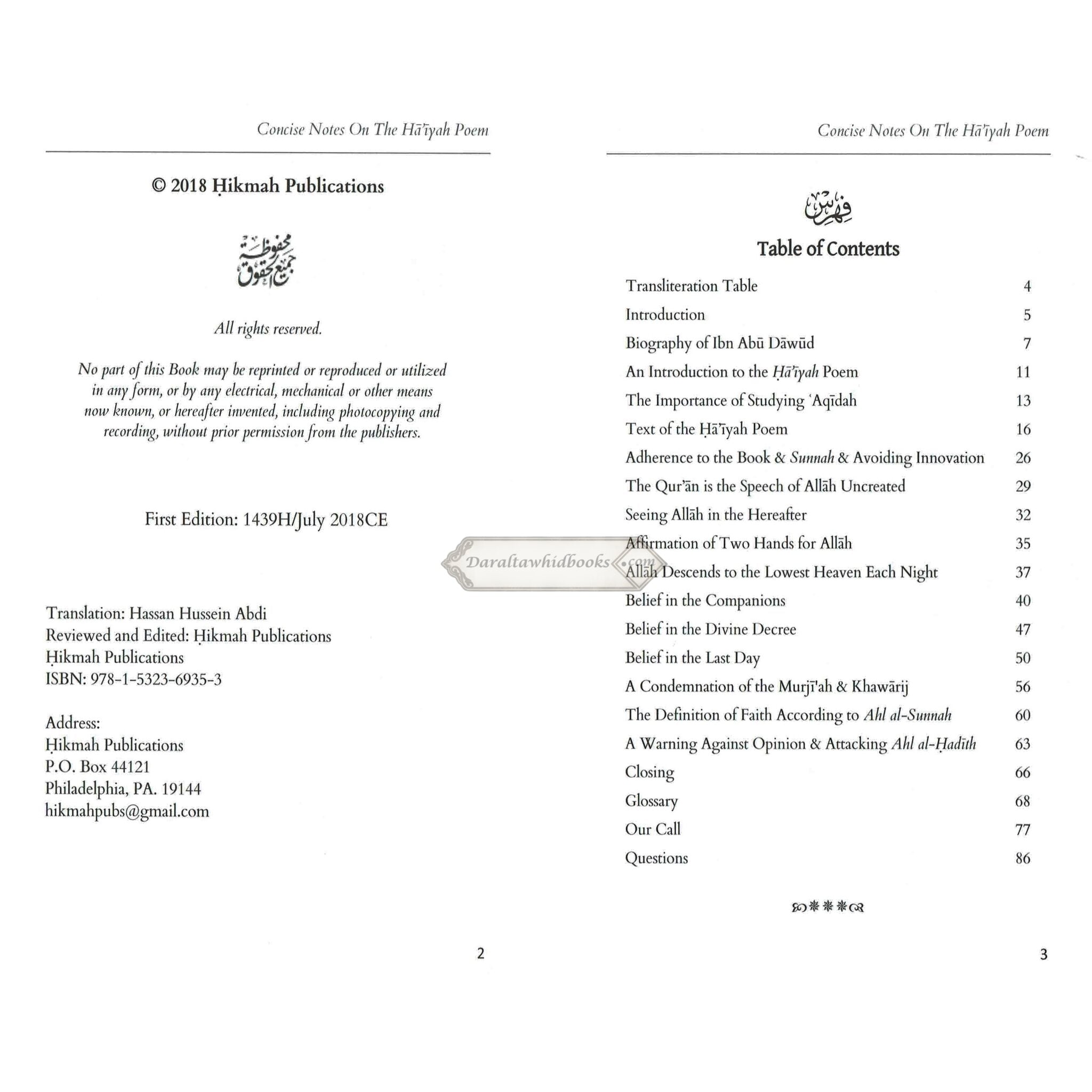 Concise Notes on the Ha'iyah Poem - Study Guide & Workbook By Imam Ibn Abu Dawud Al Sijistani