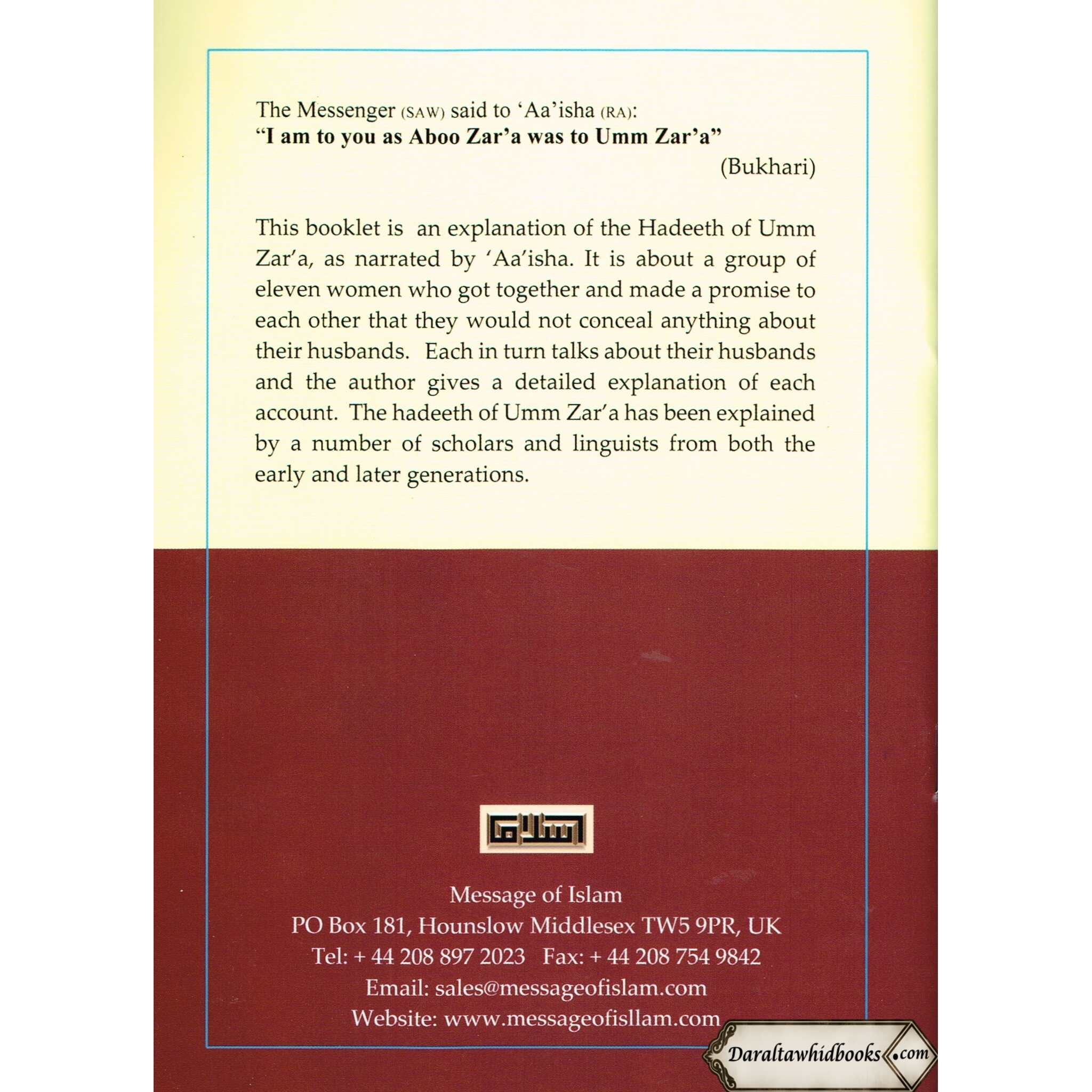 The fascinating collection of hadiths "Eleven Women and Their Husbands By Muhammad ibn Abdul-Kareem Al-Qazweenee" by Muhammad ibn Abdul-Kareem Al-Qazweenee illuminates the lives of eleven exceptional women from various origins who were married to various men. Readers are able to investigate the distinctive narratives of these women, each of whom has their own particular circumstances and experiences. In addition to being interesting and entertaining, the stories in "Eleven Women and Their Husbands" also provide important insights and lessons. In addition to imparting valuable teachings on marriage, piety, and the dynamics of family life, Anyone who enjoys engaging tales that offer a window into the range and richness of human lives will find it to be a compelling read as well. The Messenger ( صلی الله علیه وآلیه وسلم ) said to Aa'isha (R.A): "I am to you as Aboo Zar'a was to Umm Zar'a (Bukhari) This is an excellent translation of the Hadeeth of the eleven women who spoke regarding their husbands. It goes into the linguistic aspects of the text and in explaining the eloquent forms used by the women in describing their husbands in easy to understand English.