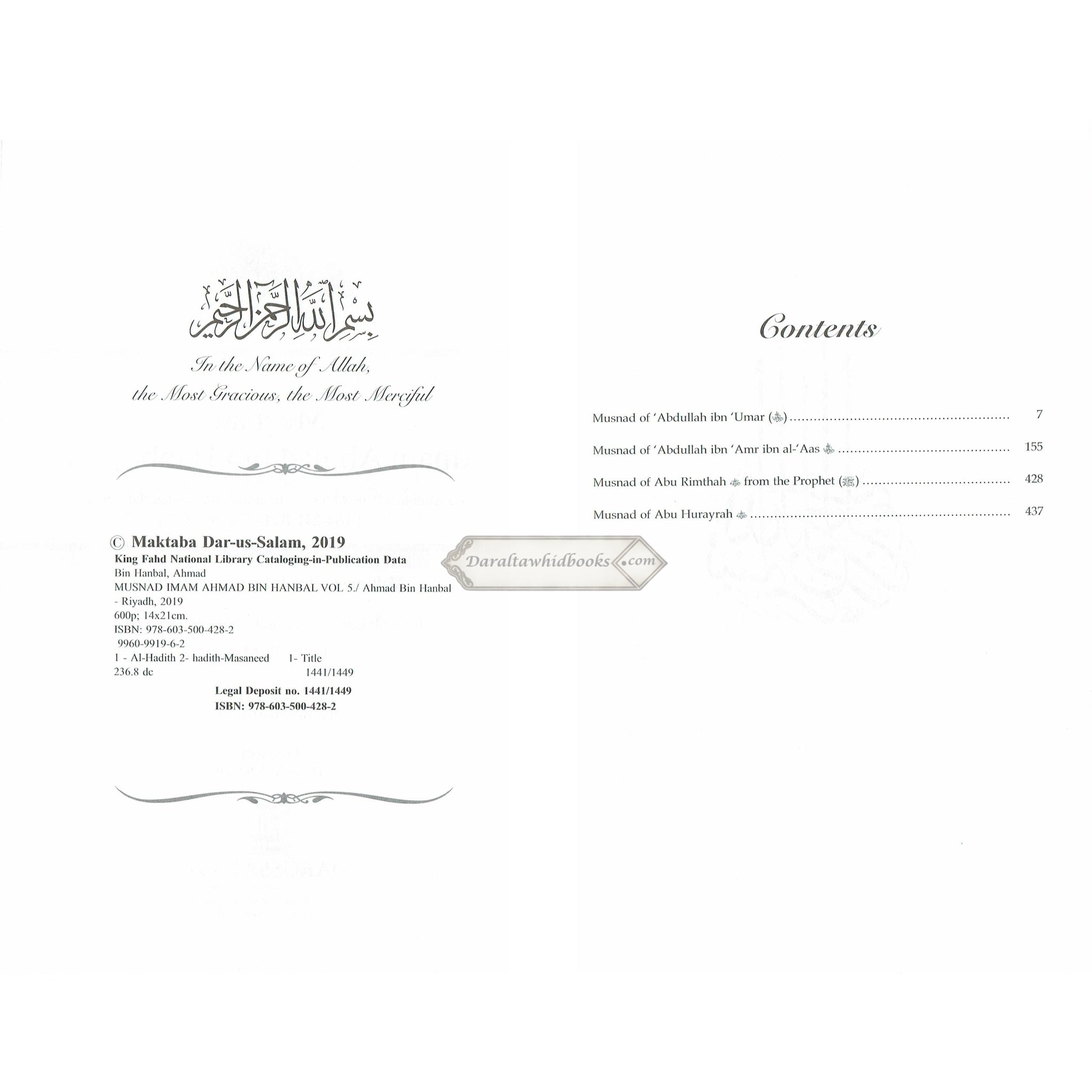 English Translation of Musnad Imam Ahmad Bin Hanbal Vol 5 (Hadith 6031-7624) By Abu Abdullah Ahmad bin Muhammad bin Hanbal Ash-Shaibani