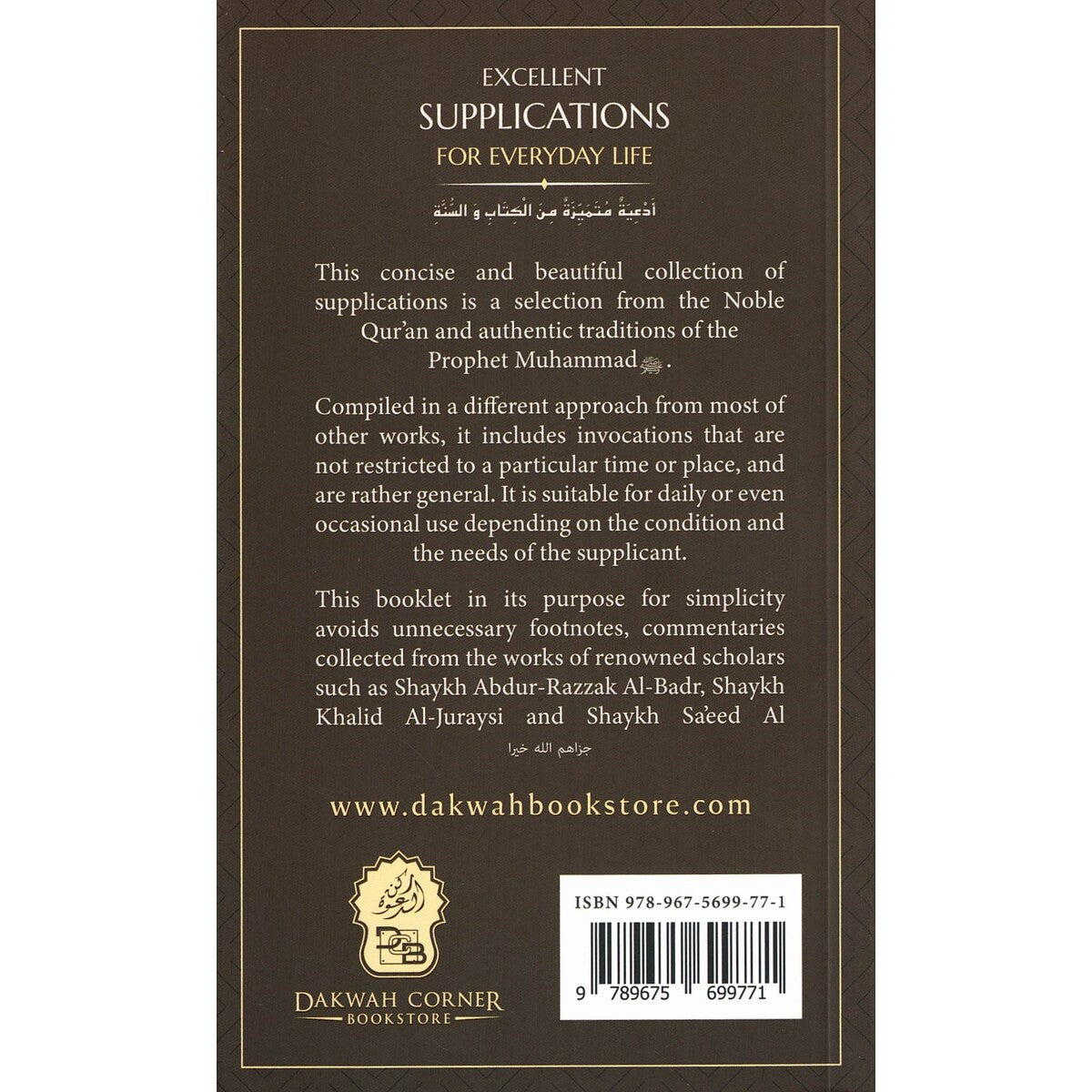 Therefore, no matter if you are a new learner seeking new duas or one who seeks to know more, "Excellent Supplications For Everyday Life" will be of value for any age of Muslims. It is very useful when you want to read it yourself or to share with your family or when you want to join an Islamic study circle.