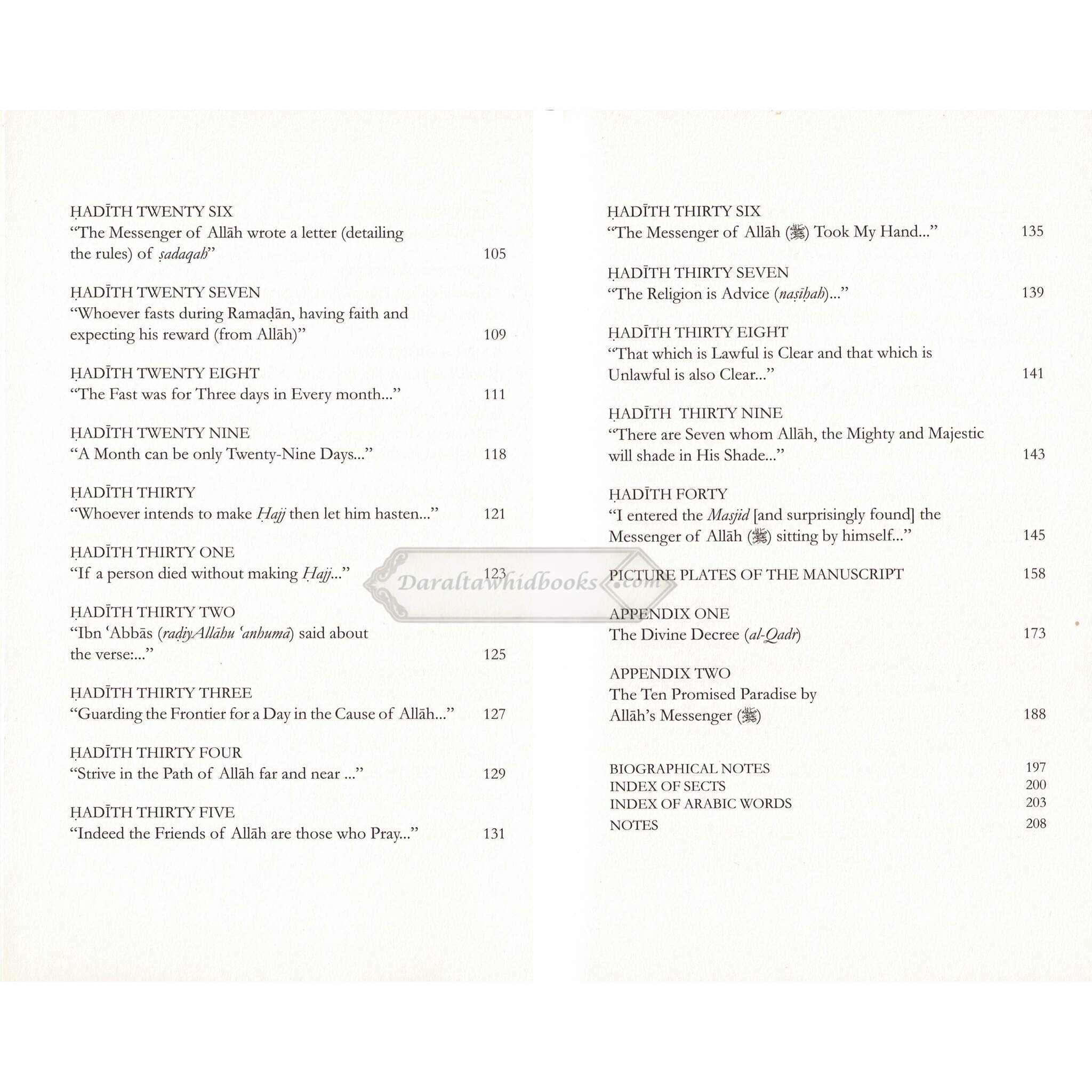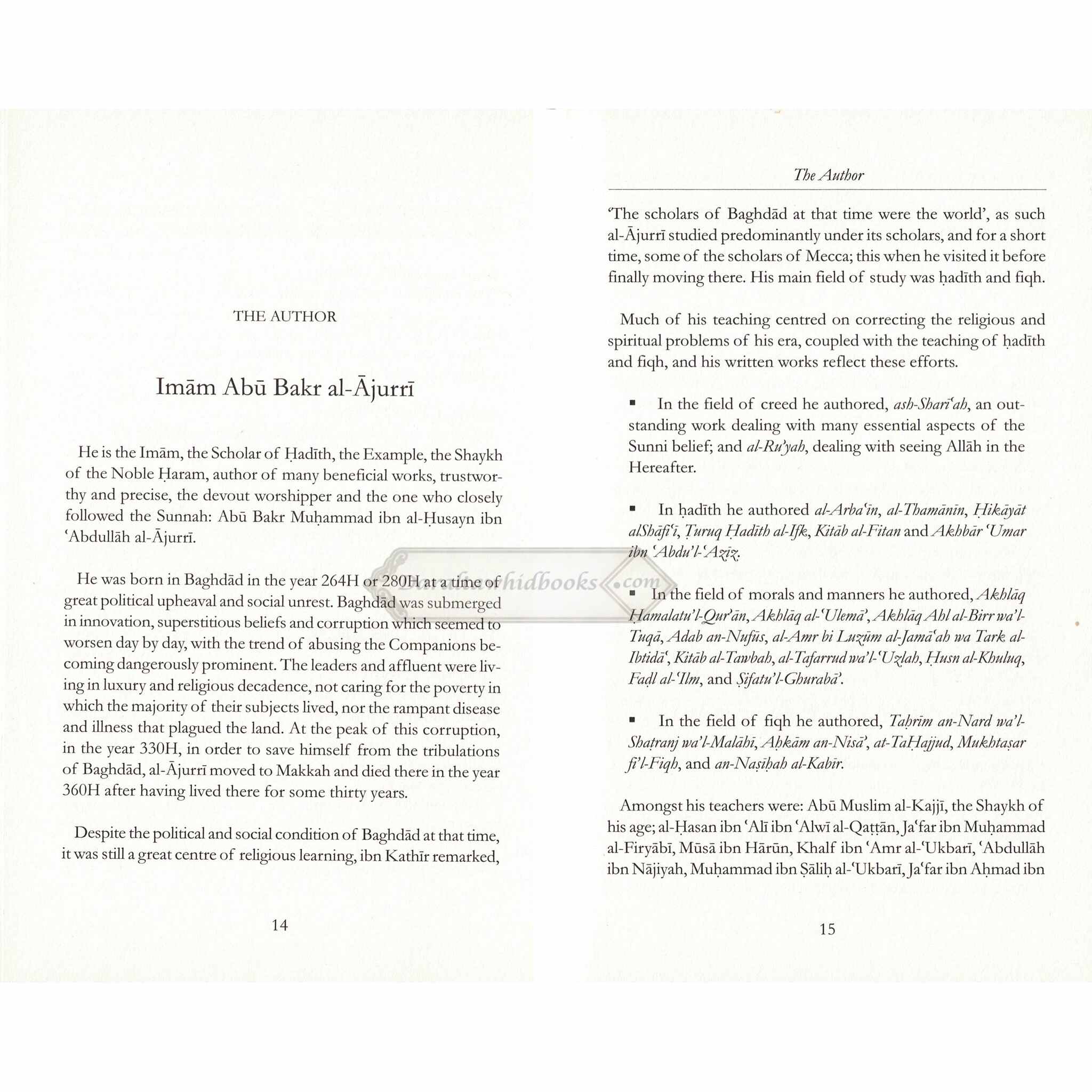 Imam al-Ajurri originally compiled this work for the benefit of new Muslims, thus including within it, foundational essentials of the noble Islamic faith. The author may Allah have mercy upon him, has commented on each hadith, presenting the subject matter in a simplified way designed to assist readers in memorising the Prophetic narrations, and implementing what they learn in an easy manner. This refreshing work is a must for Muslims of all levels of knowledge and competency; requiring attention from the young and old. Useful also as a teaching aid in schools, or as ideal gift for new Muslims and those commencing their journey in pursuit of sacred knowledge.