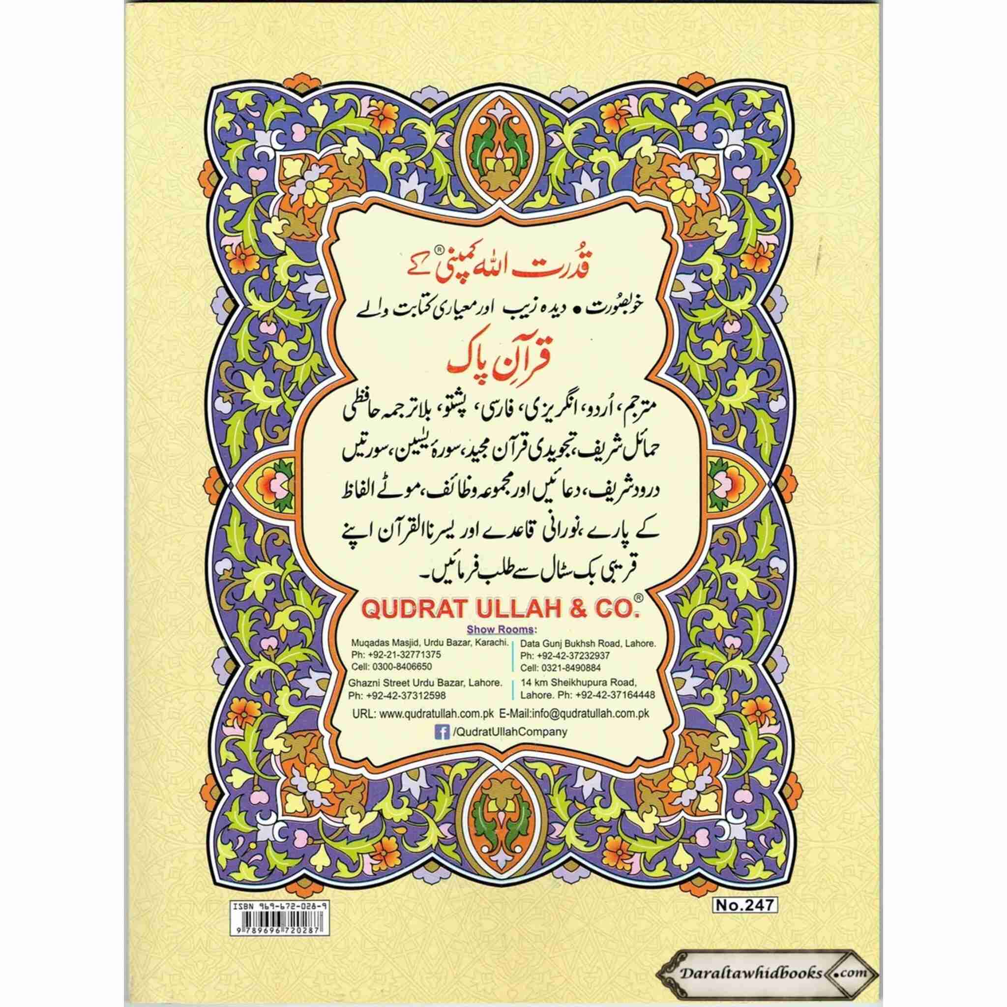 The "Holy Quran 30 Parts Set with Color-Coded Tajweed Rules (9 Lines)" (Reference 247) is a precisely constructed and visually upgraded edition of the Quran that is intended to facilitate a deeper comprehension and proper recitation of the Holy Book. With its color-coded Tajweed regulations, this set is a one-of-a-kind resource for both novices and seasoned readers looking to master the art of Quranic recitation.