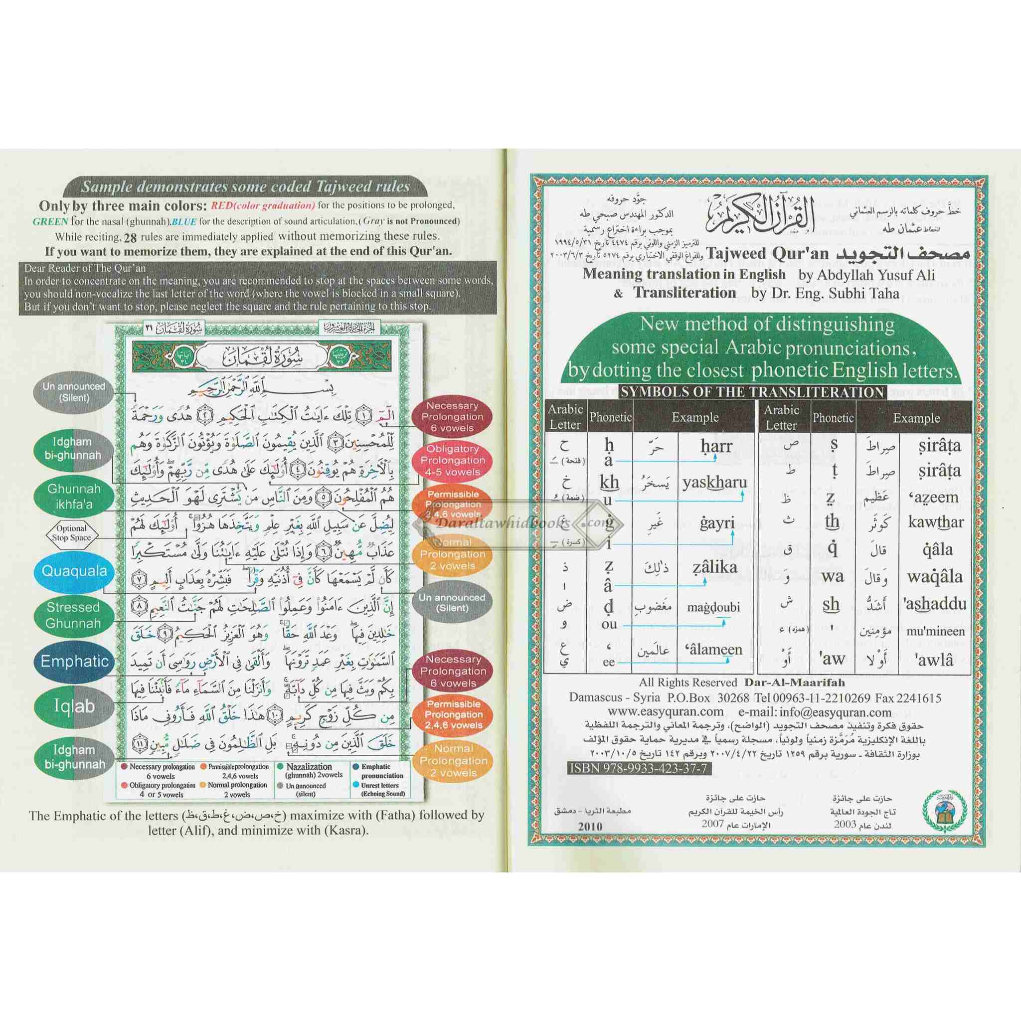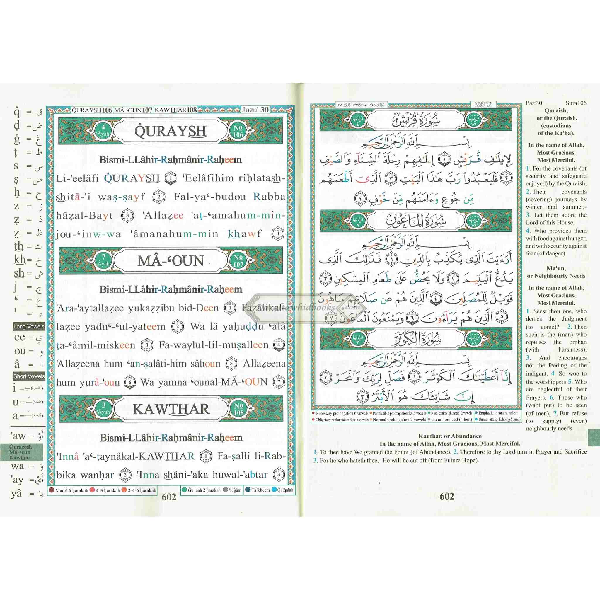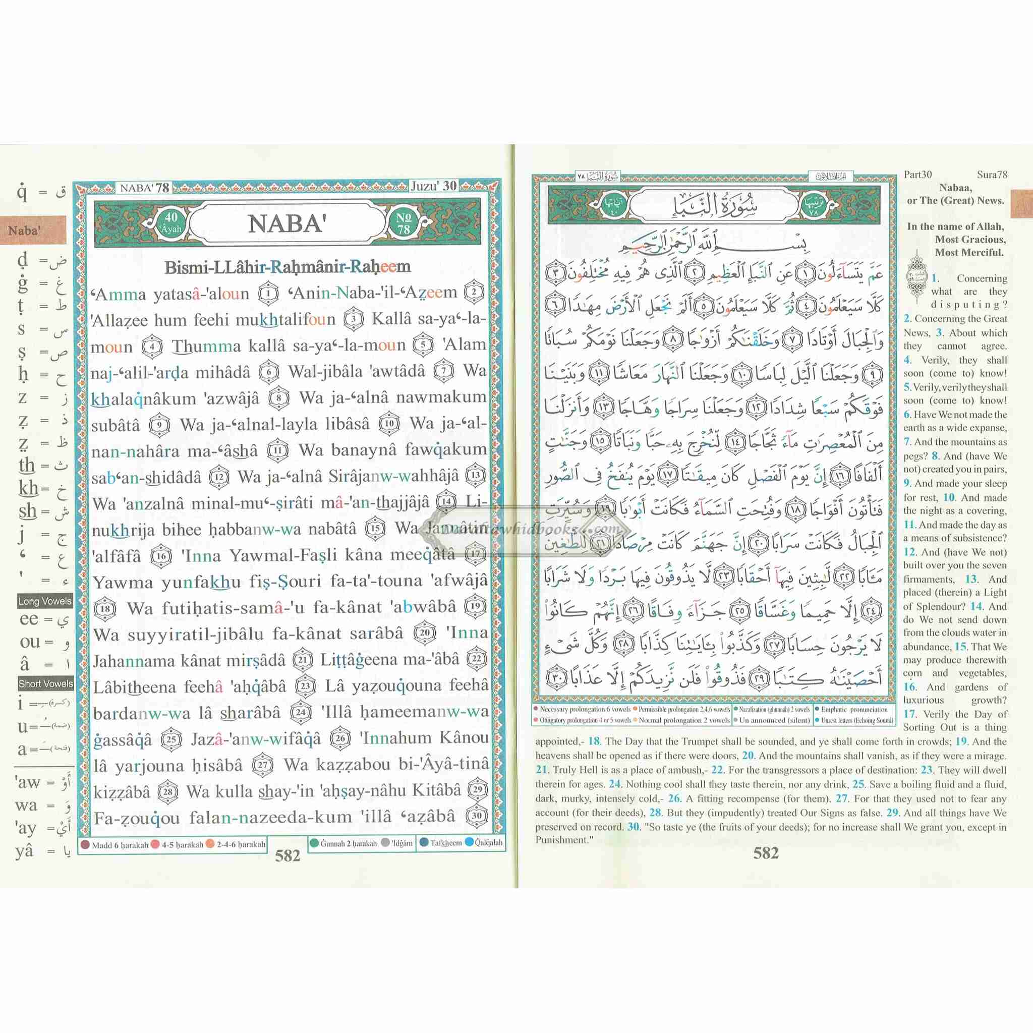 Juz Amma (Part 30 Only) Tajweed Quran Arabic and English with Roman Transliteration