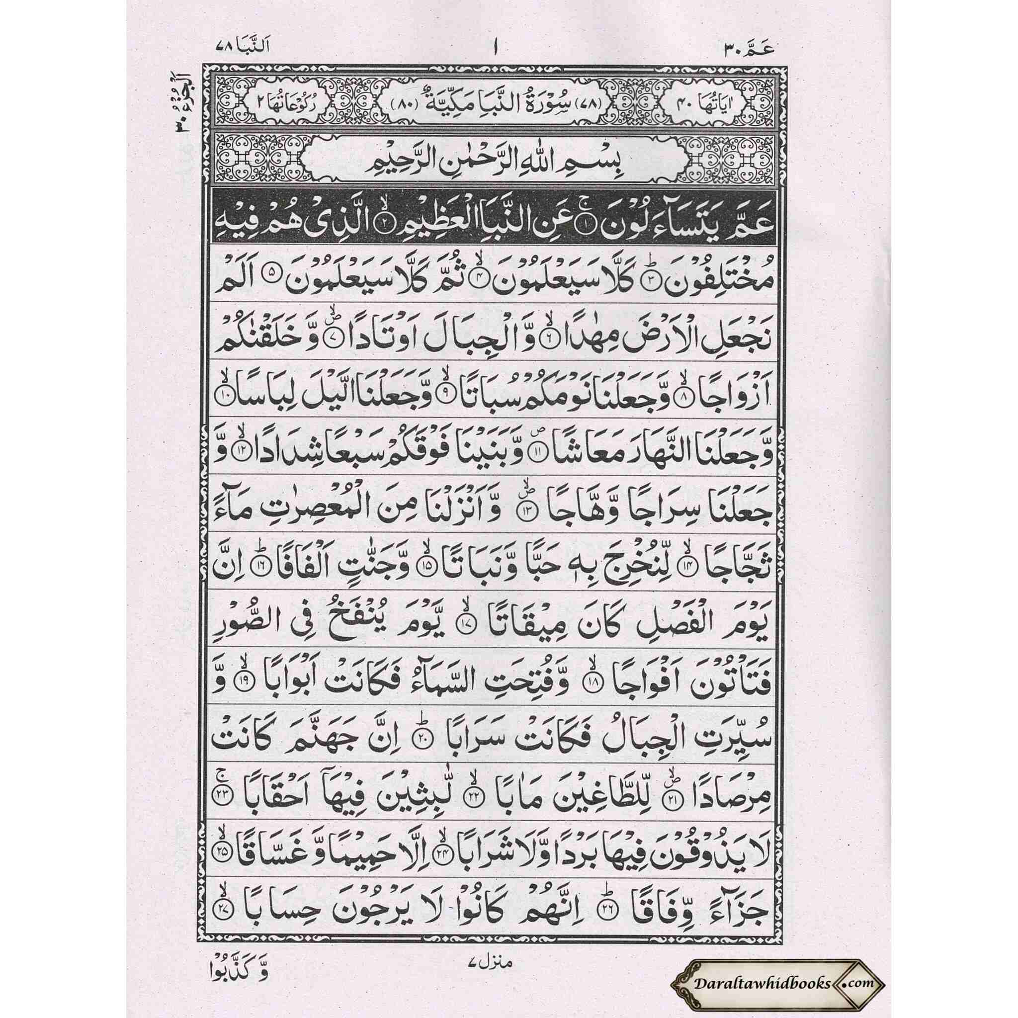 Juzz Amma 15 Line Black and White (Persian/Pakistani) Script Ref 504