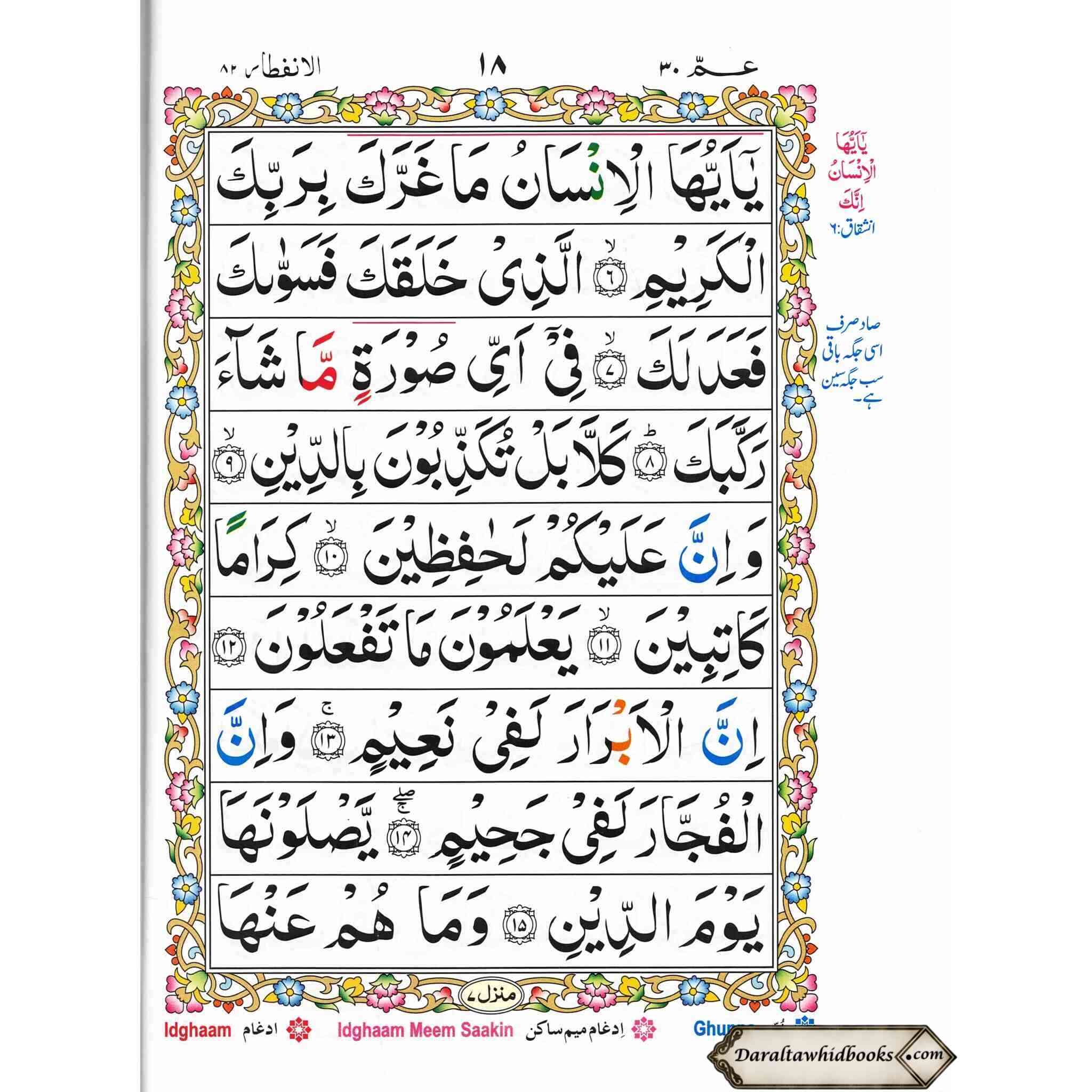 Juzz Amma with Colour Coded Tajweed Rules: Persian ,Pakistani ,Indian Script,Ref 430
