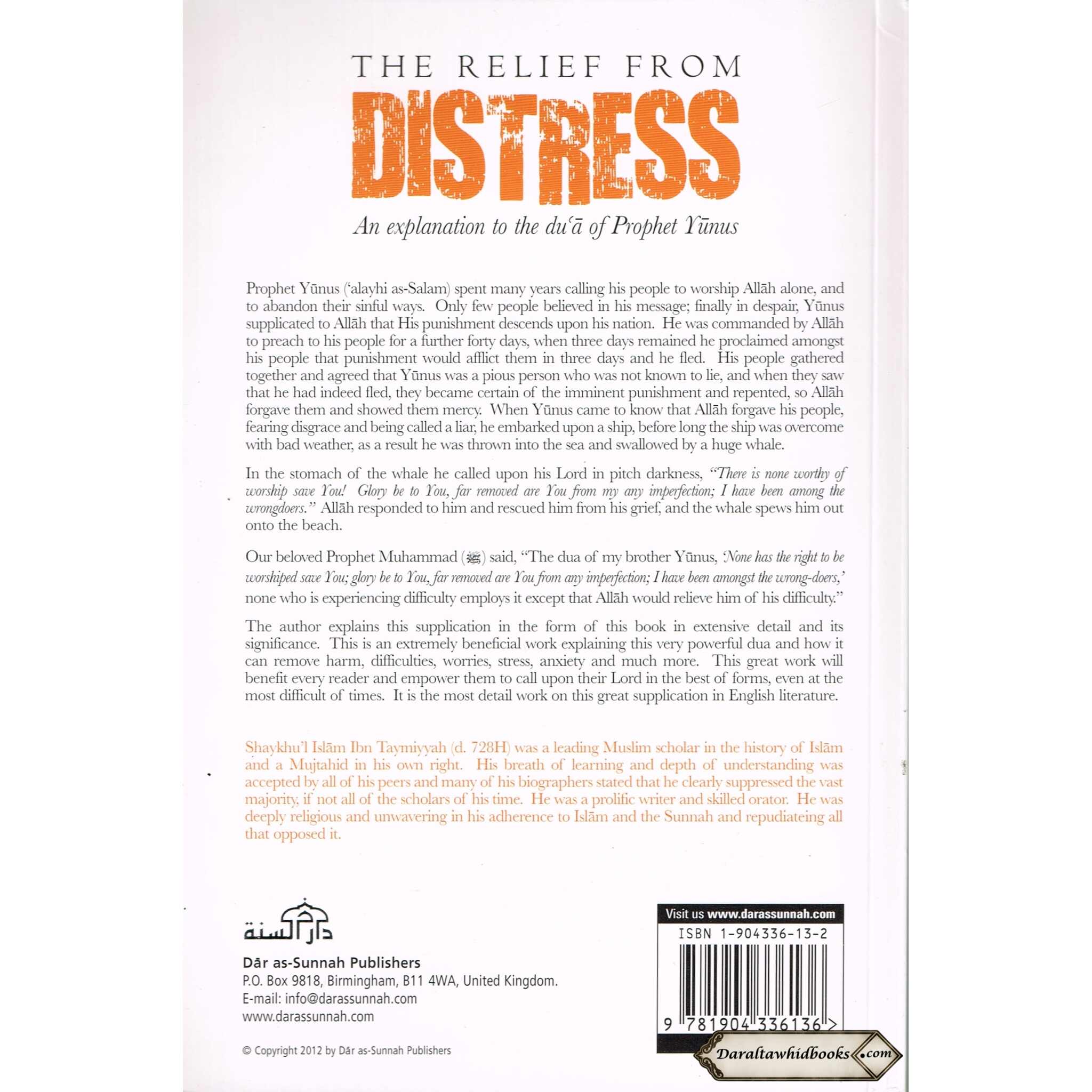 The paperback book "Relief from Distress" was written by Shaykhul Islam Ibn Taymiyyah. For people going through sorrow and adversity in their life, this informative work provides direction and consolation. Shaykhul Islam Ibn Taymiyyah tackles numerous sorts of sorrow and offers spiritual and practical solutions thanks to his thorough understanding of Islamic principles. Relief from Distress provides encouragement and direction during trying times by drawing on verses from the Quran, prophetic traditions, and the scholastic knowledge of Ibn Taymiyyah. Shaykh aI-Islam ibn Taymiyyah, may Allah sanctify his soul, was asked about the saying of the Prophet (SAW) said, Relief from Distress invocation of my brother Yunus, "none has the right to be worshipped save You; glory be to You, far removed are You from any imperfection; I have been amongst the wrong-doers," none who is experiencing difficulty employs it except that Allah would relieve him of his difficulty