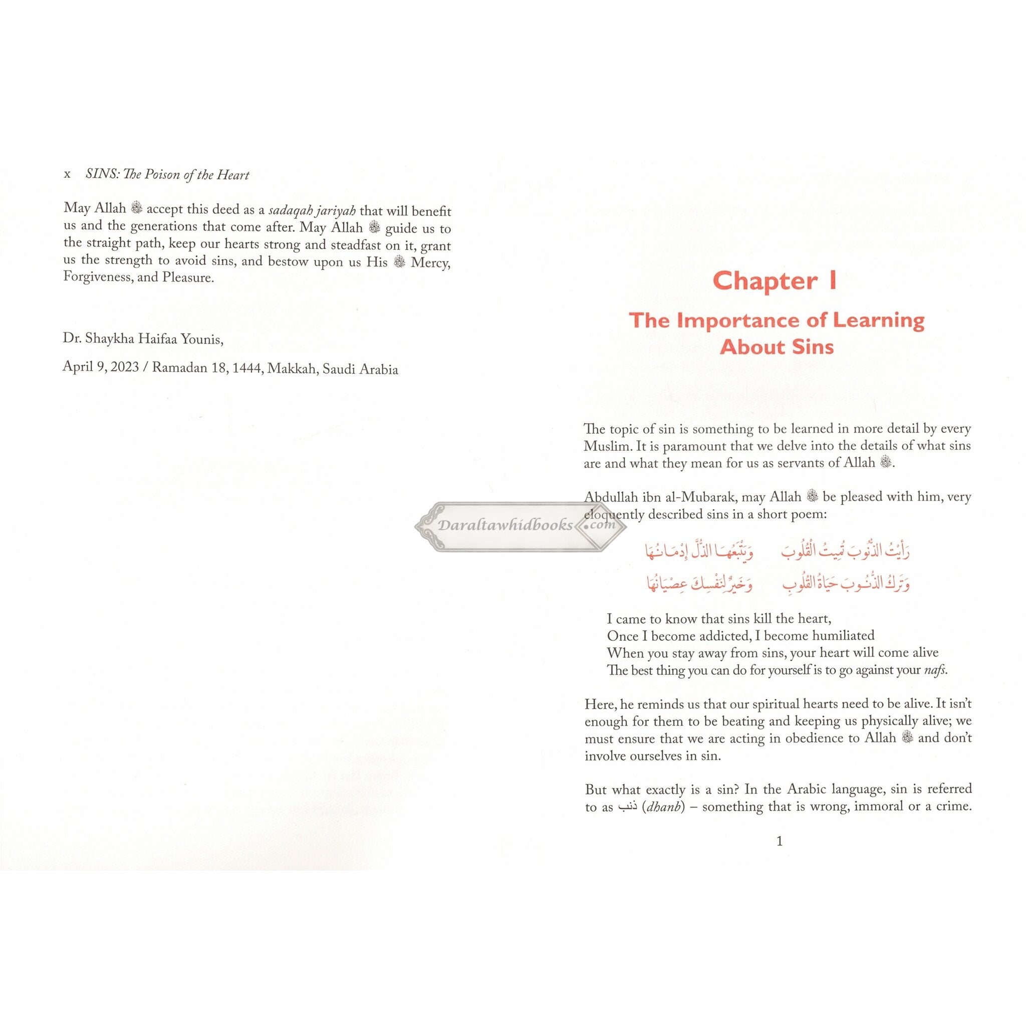 Dr. Haifaa Younis invites us in her book, Sins - The poison of the heart, to pause for a moment and reflect on our contemporary lifestyle. To consider the possibility that unwittingly, or through forgetfulness, we may be doing things that are displeasing to Allah acts of disobedience. To realise that even our ignorance may have real consequences, not just in the Hereafter but also in our everyday lives in our relationship with Allah the people around us and the world at large. Learning about sins is an eye-opening, transforming experience that changes one's heart and mind. This book is a poignant reminder and encouragement to the reader to re-examine their lives. To accompany the author on a journey from unanswered questions, doubts, and uncertainties to the light of knowledge, understanding and new perspectives on Allah, themselves and our time here. Dr. Haifaa Younis is an American Board Certified Obstetrician and Gynaecologist with roots from Iraq. She is the founder, Chairman, and Resident Scholar at Jannah institute and Resident Scholar at Islamic Centre of Irvine, California. Dr. Younis graduated from the Mecca Institute of Islamic Studies (Jeddah, Saudi Arabia) and Al-Huda Qur'an Memorization School (Jeddah, Saudi Arabia) where she completed the memorization of the Qur'an. Currently, she lives and works in the United States, and teaches various Islamic studies courses with a focus on purification of the heart (Tazkiyah).
