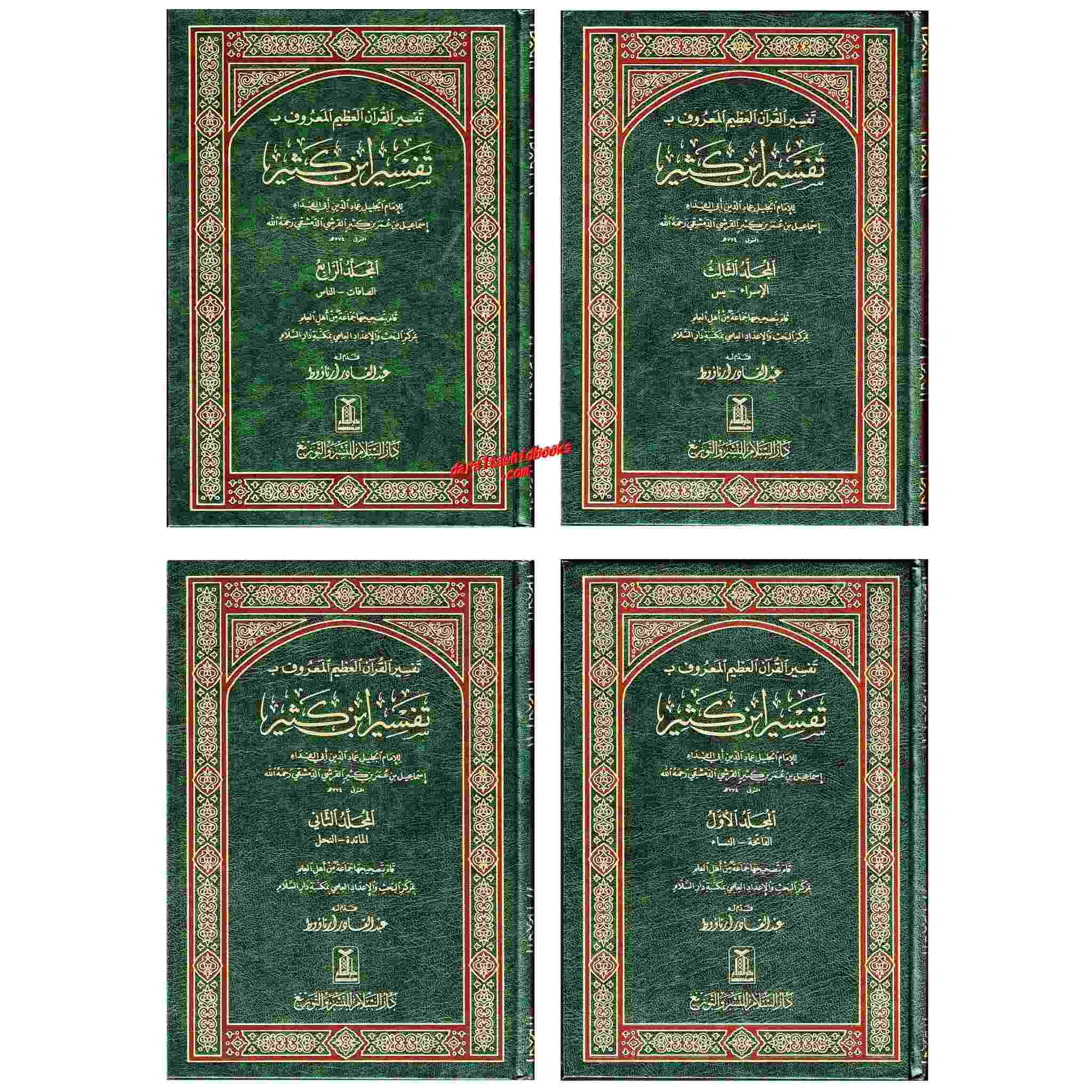 This book is titled Tafsir Ibn Kathir and is known for its general appreciation of scholarly works of the Quran produced by an Islamic scholar Ibn Kathir.; This particular edition is a four-volume collection written in Arabic.Ibn Kathir's Tafsir (exegesis) is highly acclaimed for its comprehensive and precise explanations of Quranic verses. This book depends on various sources such as the Quran, Sunnah instructions and the teaching of Prophet Muhammad PBUH Tafsir of Ibn Kathir provides unique insights into the grammatical, historical, and contextual elements of Quranic verses.