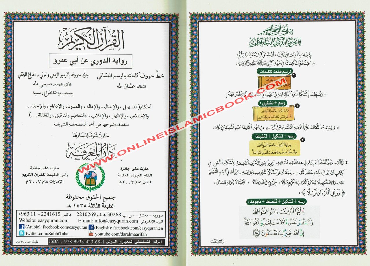 Whether you are a novice or an established learner, this edition will help you improve your Quranic reciting skills. It is a wonderful resource for individuals, Quranic school students, and educators.