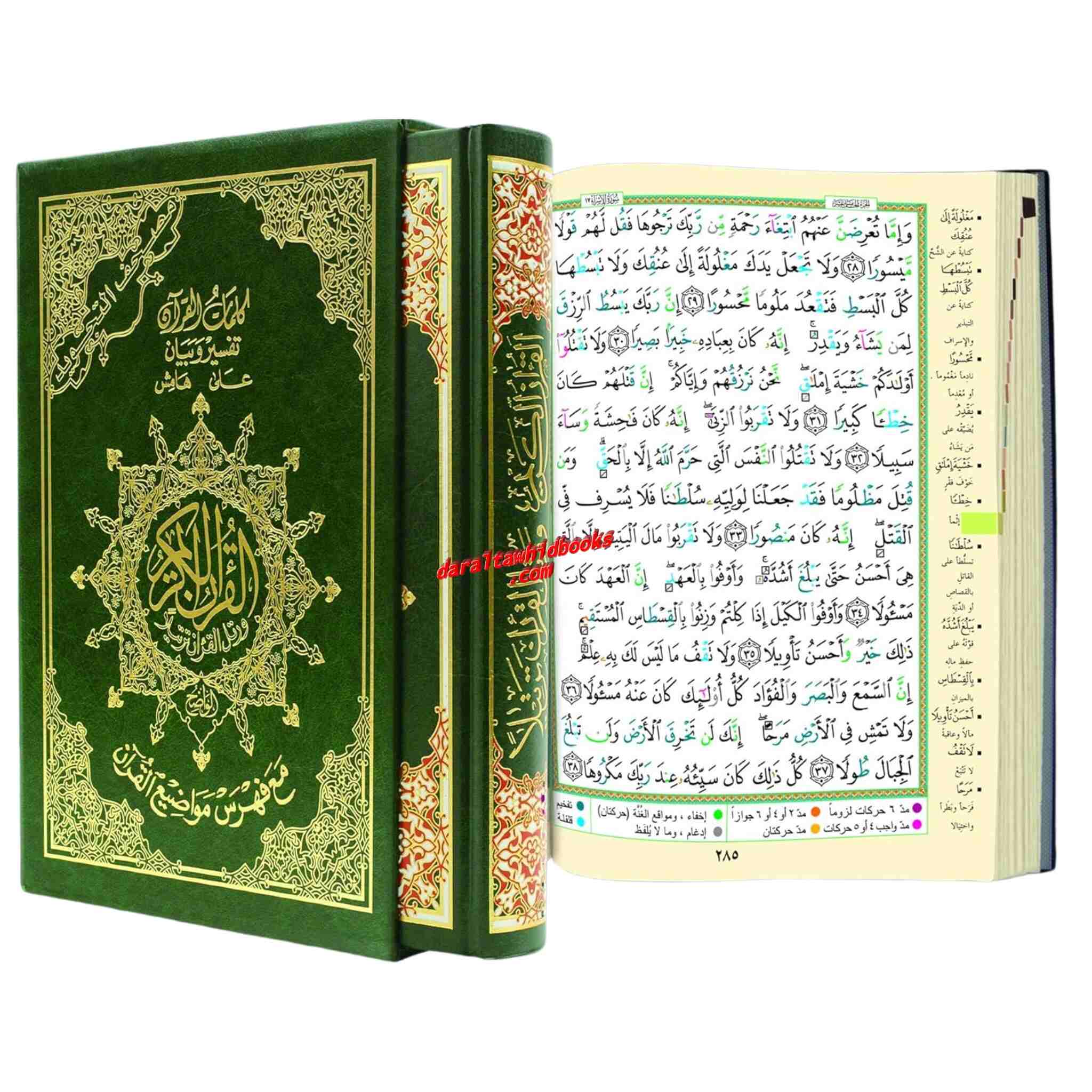 This is complete Color Coded Tajweed Quran (from Surah Al-Fatiha to Suran Al-Nas), it comes with a nice, beautifully designed hard and heavy duty cover, very strong binding, perfect finishing. This Quran comes in different colors. The paper quality is very high, with Interpretation of selected words on the margin of each page. This Tajweed Quran size (7 "X9") is good for reading at home, it has large and easy to read font size. So the script is obvious, as well as the background color of the Quran text comes in cream color, this is a preference for many readers because they feel it is more relaxing for the eye than the white background