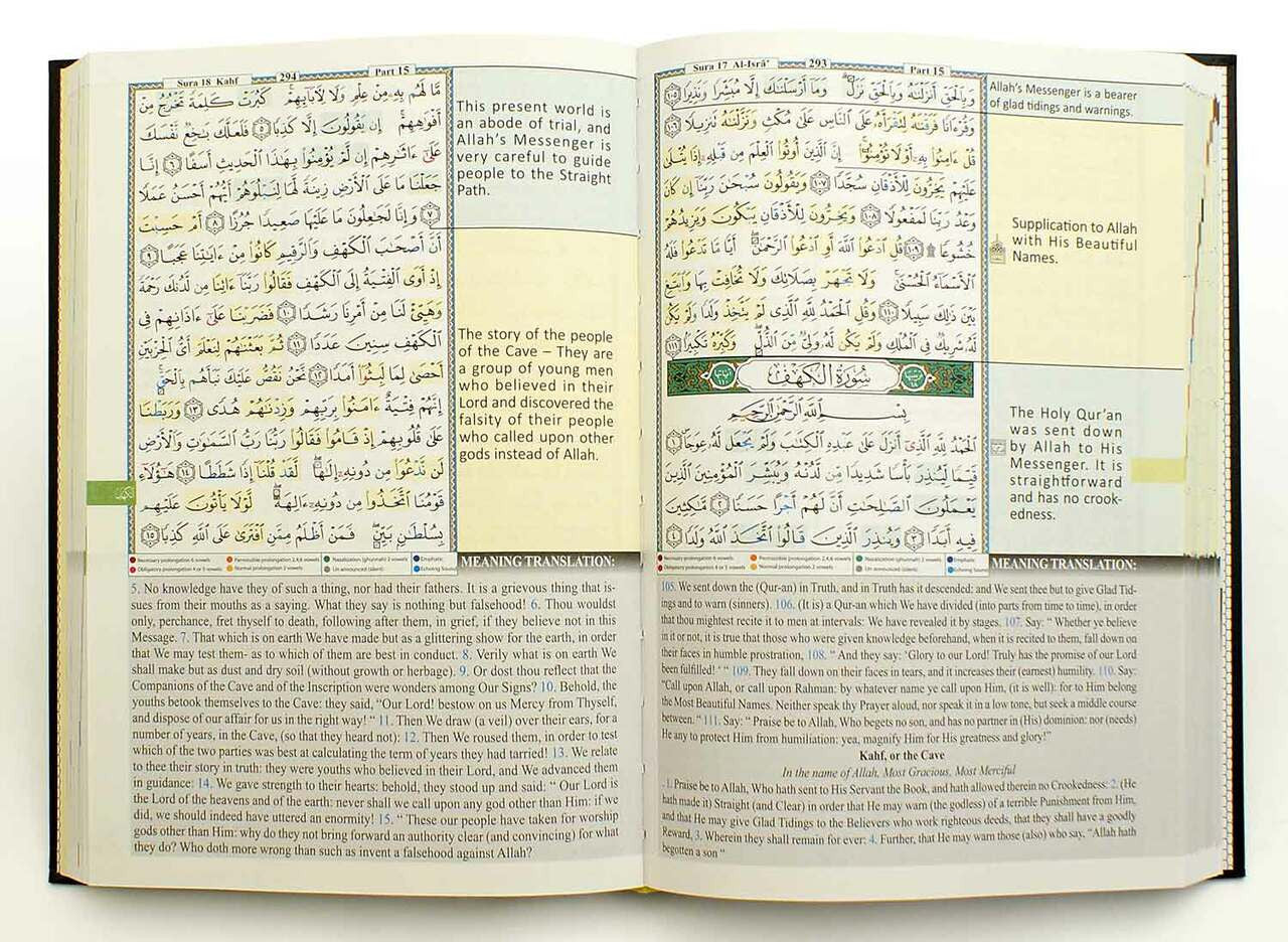 * A set of very useful indexes such as: Surahs Colour Index, Subject Index.