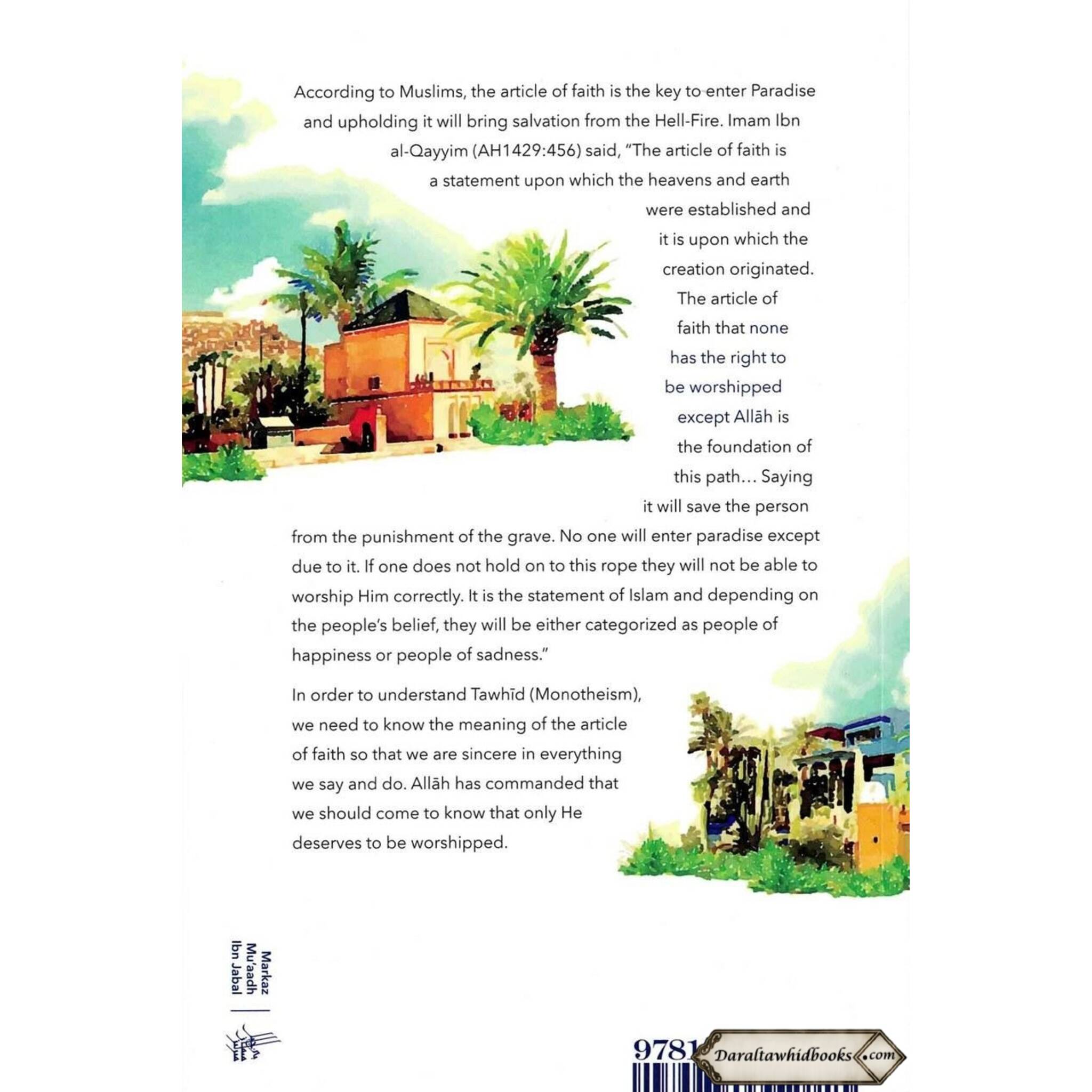 According to Muslims, the article of faith is the key to enter Paradise and upholding it will bring salvation from the Hell-Fire.Imam Ibn al-Qayyim (AH 1429:456) said, "The article of faith is a statement upon which the heavens and earth were established and it is upon which the creation originated. The article of faith none has the right to be worshipped except Allah is the foundation of this path... Saying it will save the person from the punishment of the grave. No one will enter paradise except due to it. If one does not hold on to this rope, they will not be able to worship Him correctly. It is the statement of Islam and depending on the people's belief, they will be either categorized as people of happiness or people of sadness." In order to understand Tawhid (Monotheism), we need know the meaning of the article of faith so that we are sincere in everything we say and do. Allah has commanded that we should come to know that only He deserves to be worshipped.