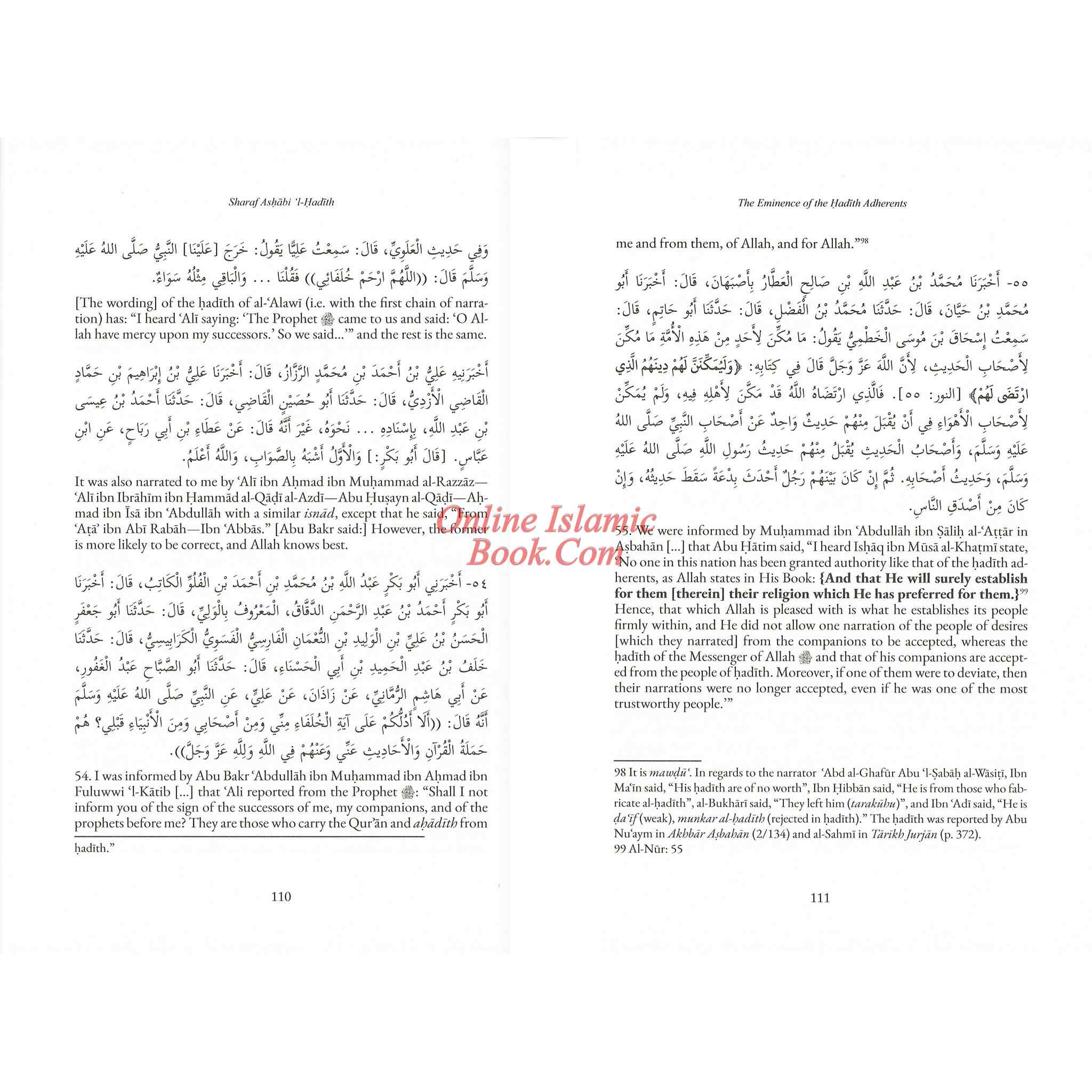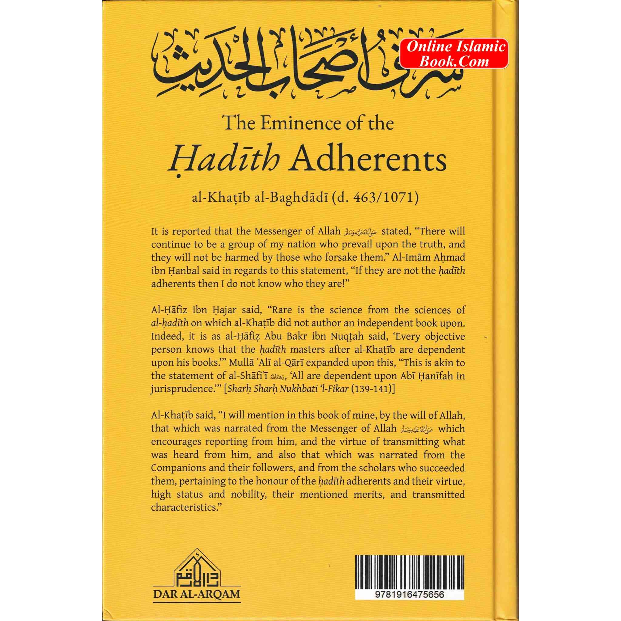 "The Eminence of Hadith Adherents" is a work produced in the 10th century by Al-Khatib Al-Baghdadi, a notable Islamic scholar and historian. The book is an important work in Islamic literature because it emphasizes the necessity of adhering to and following the Hadith, which are the sayings, actions, and approvals of Prophet Muhammad (peace be upon him).