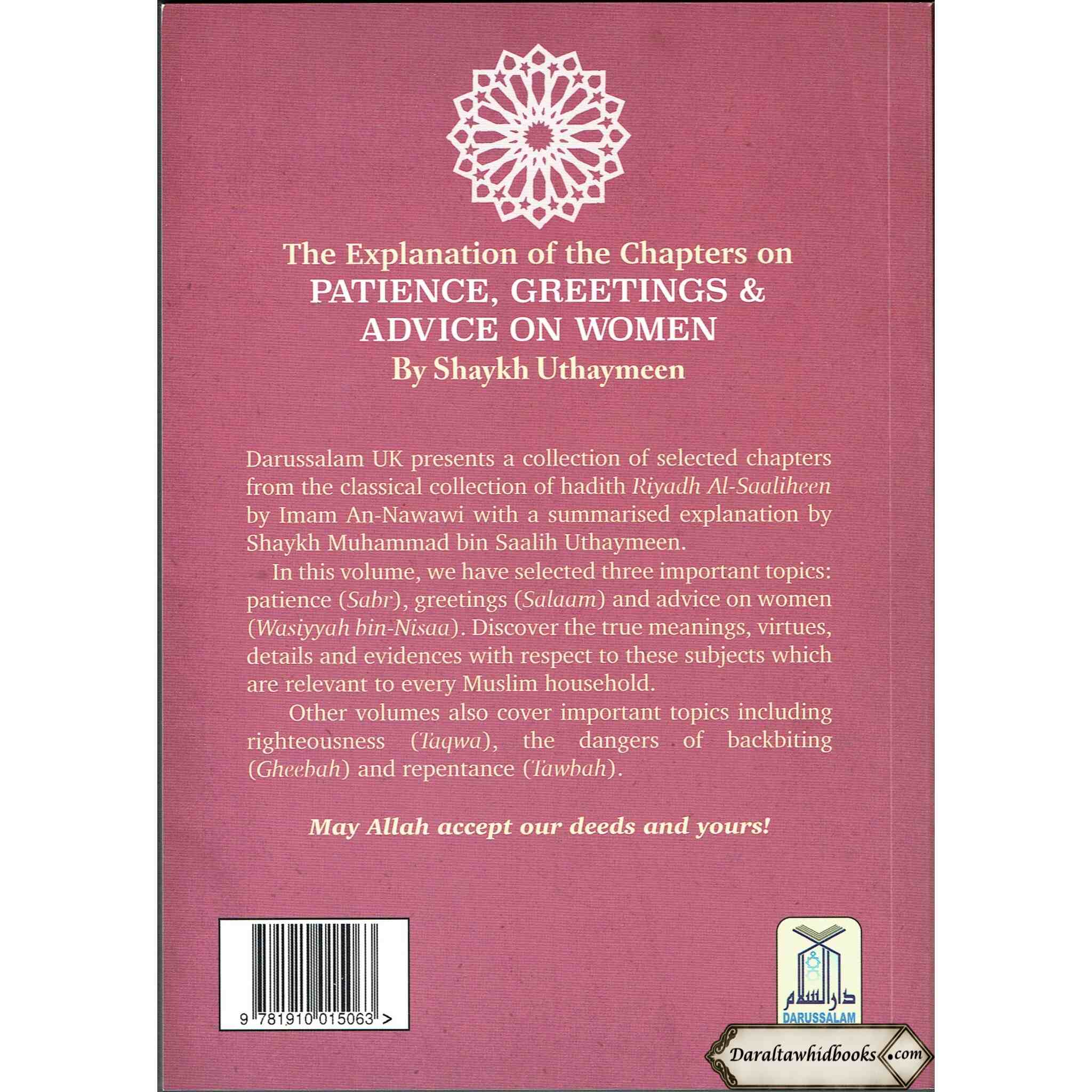 The Explanation of the Chapters on Patience, Greetings & Advice on women شرح رياض الصالحين By Shaykh Uthaymeen