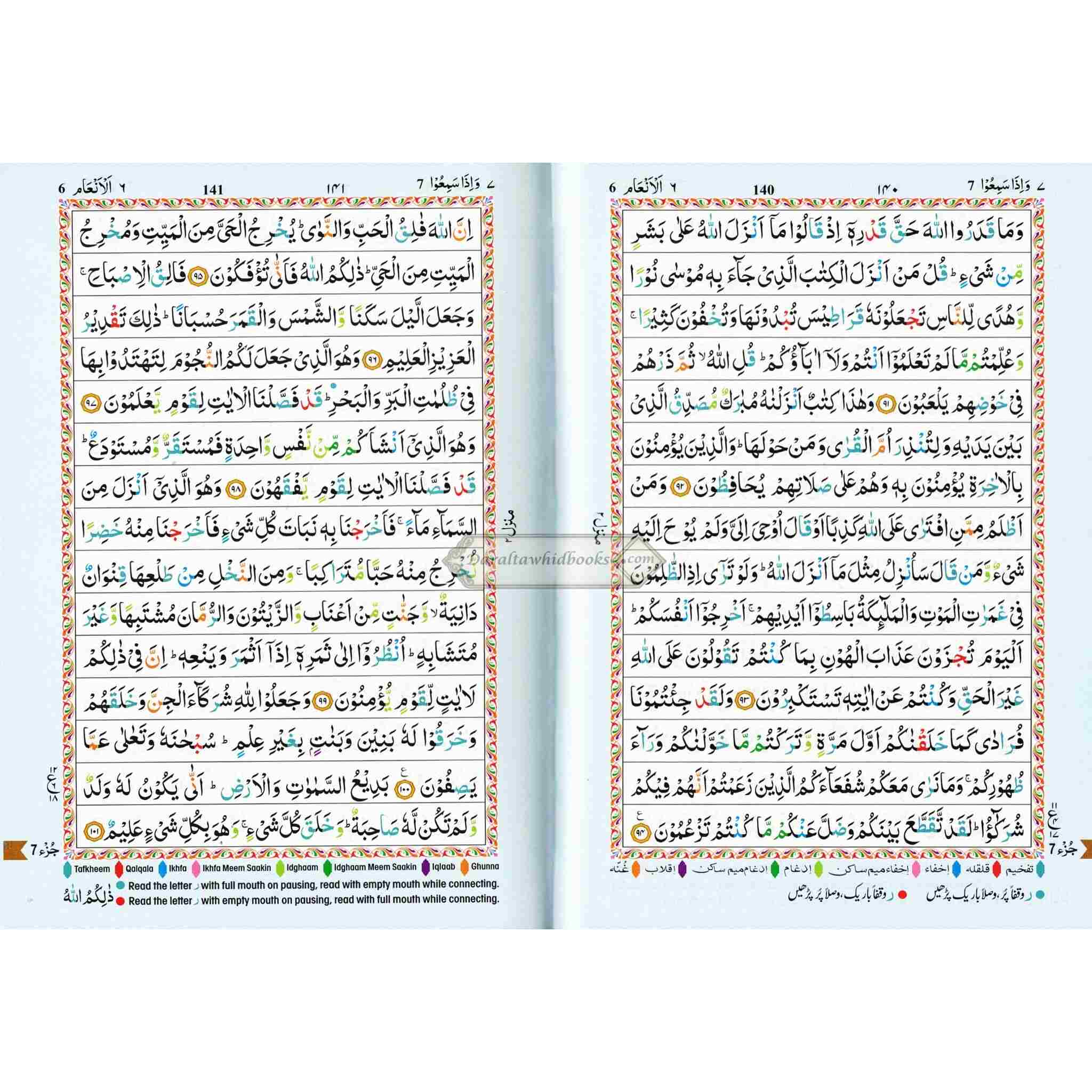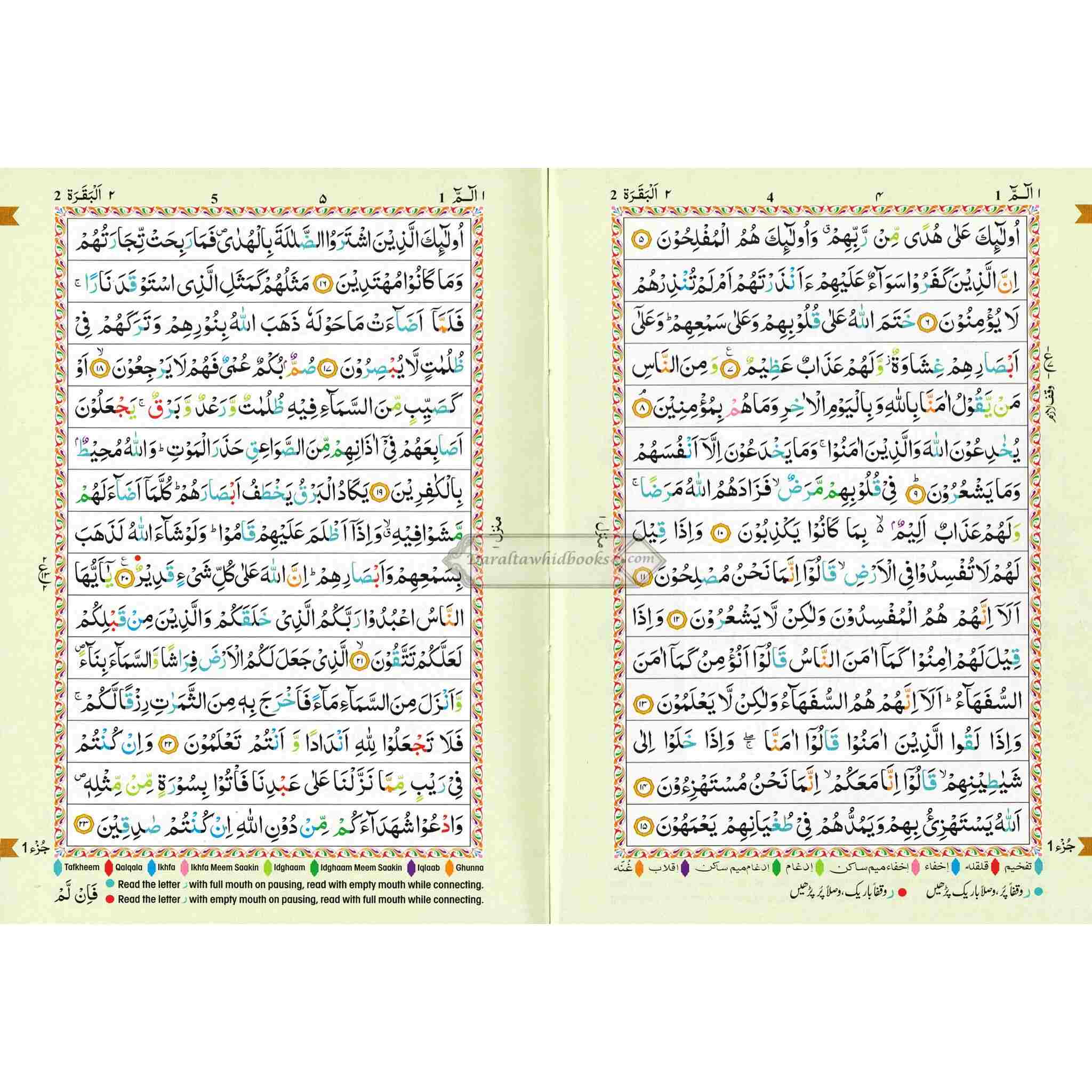 The Holy Quran Colour Coded Tajweed Rules in English and Urdu (Ref 123-CC) 15 Lines Quran