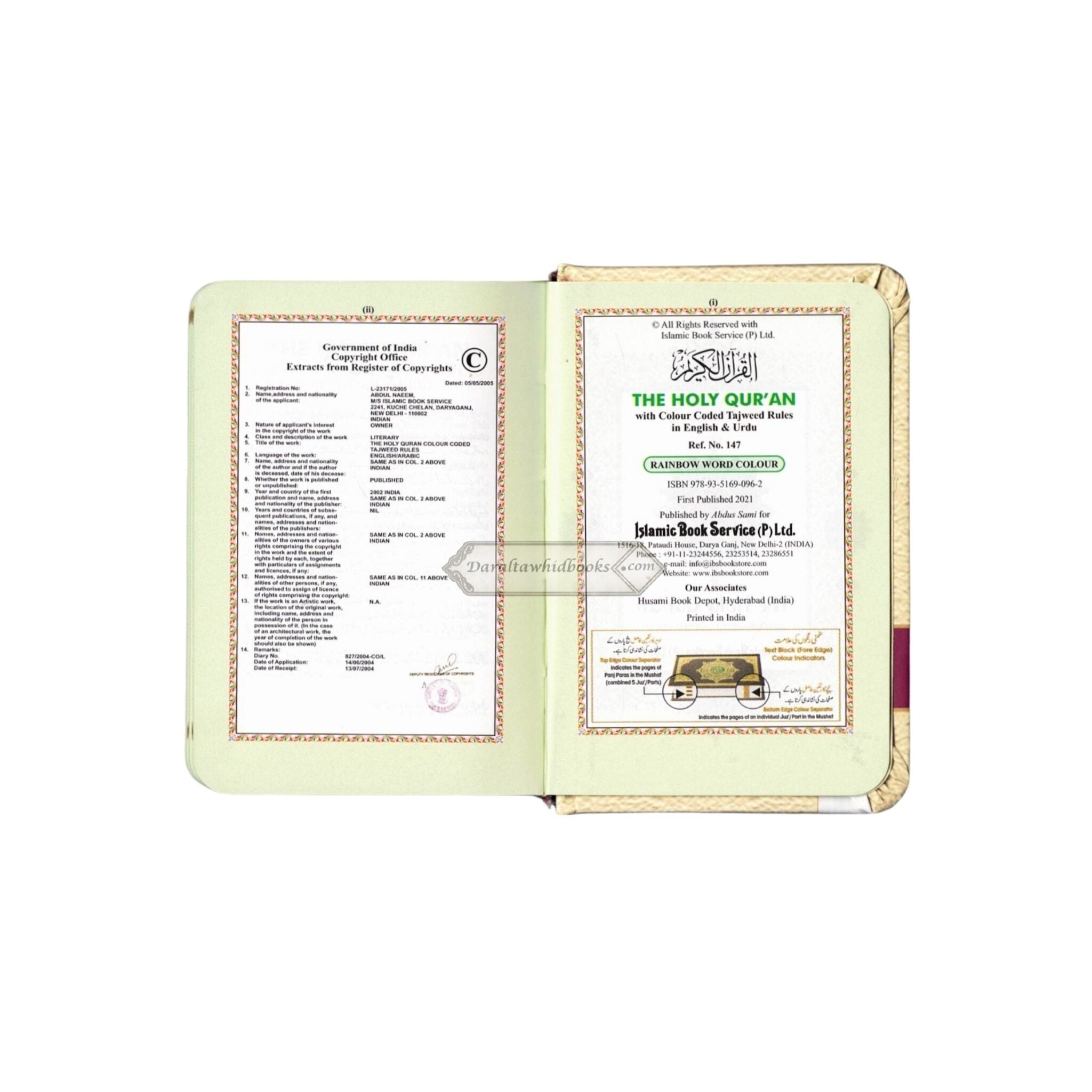 The Holy Quran Colour Coded Tajweed Rules in English and Urdu (Ref -347) 15 Lines Quran (Pocket Plus Size)Arabic Language